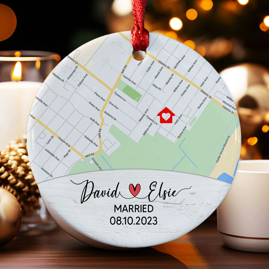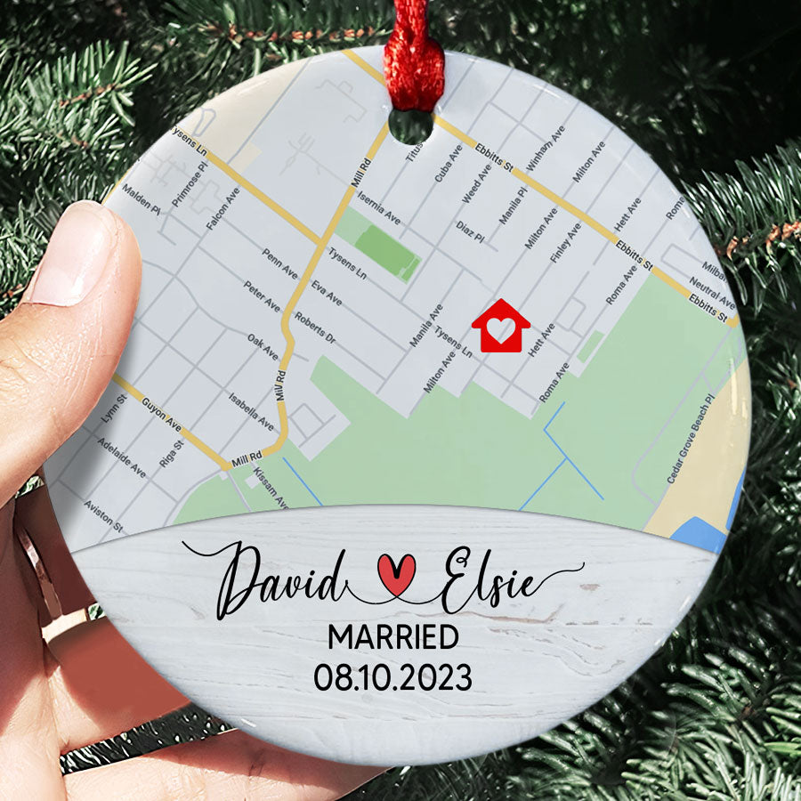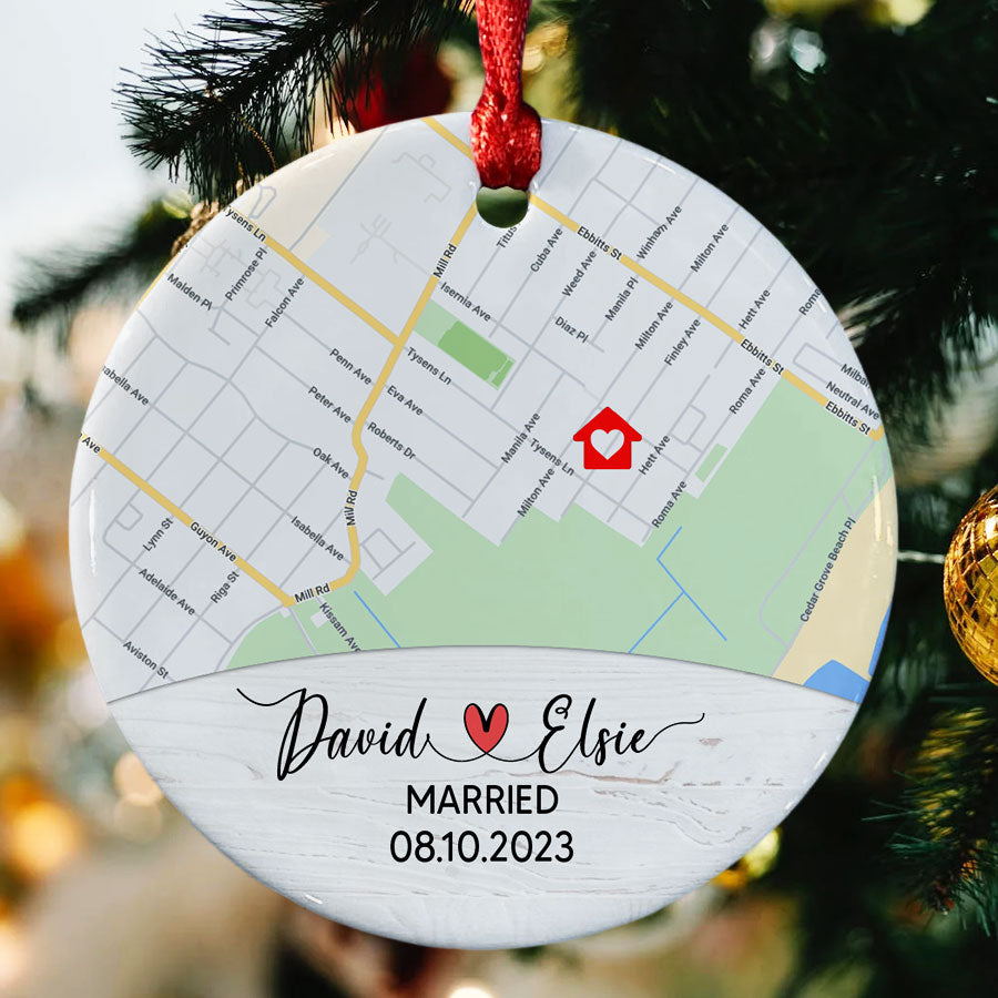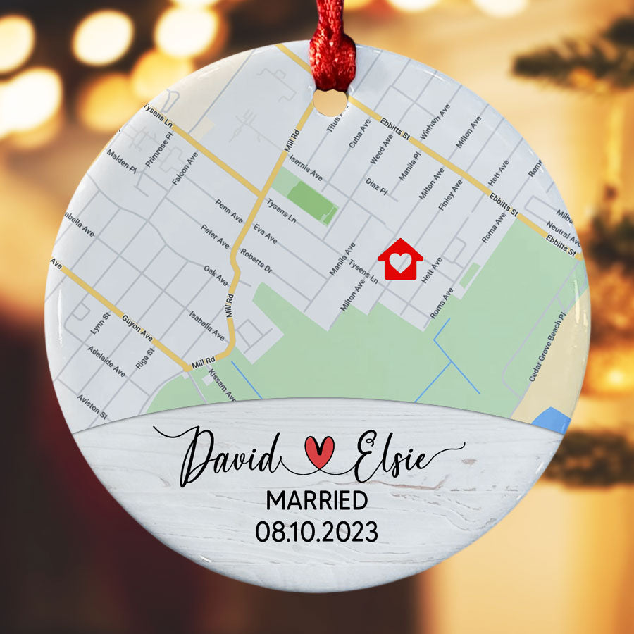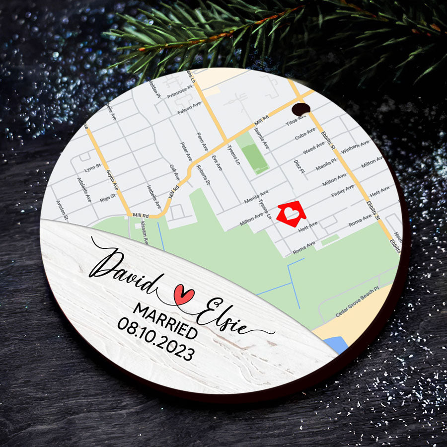 Rather than a gift that will be forgotten, custom wedding ornaments | custom map ornament preserves the memory of your big day in a truly meaningful way. As you and your loved ones gather around the Christmas tree each December, this special ornament will spark happy memories and smiles. It makes a touching way to include your wedding details in your family's annual decorating.