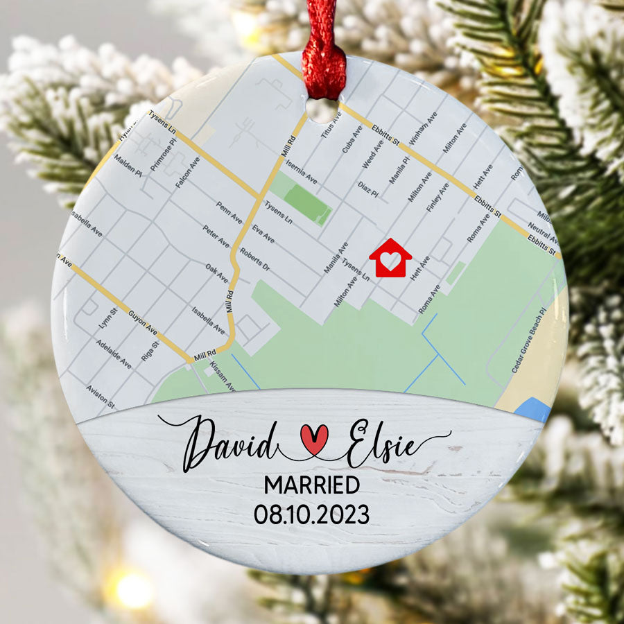 Wedding Ornament | Personalized Ceramic Ornaments | 2023 Married Ornament | Custom Map Ornament