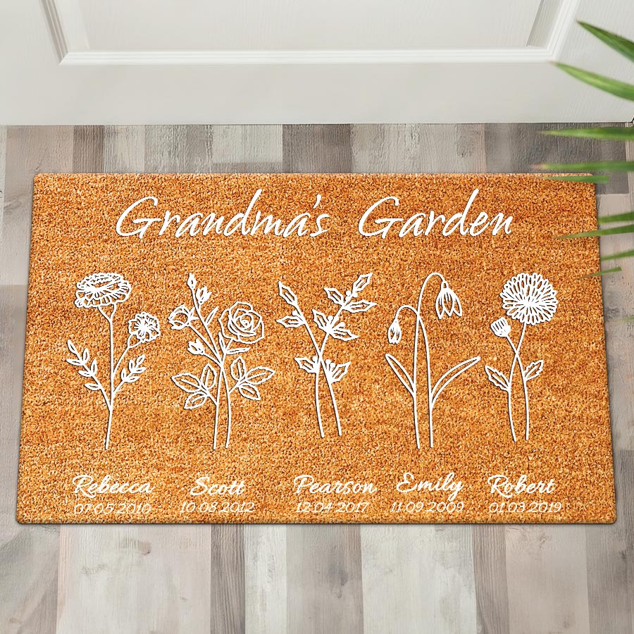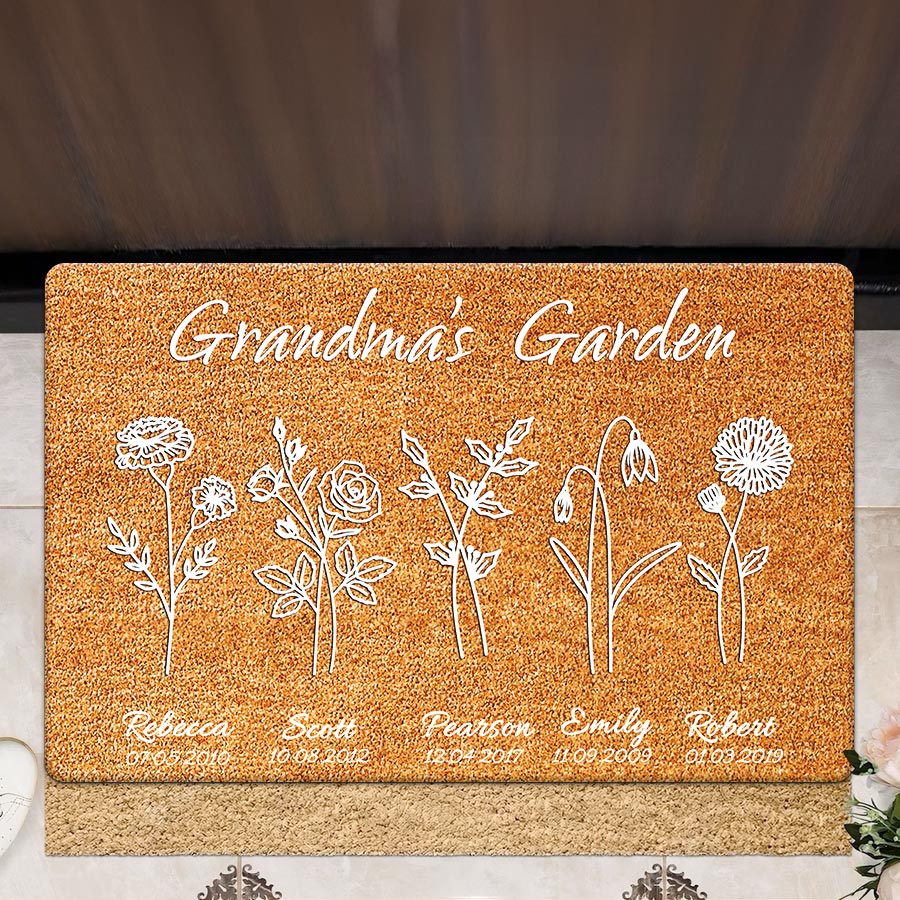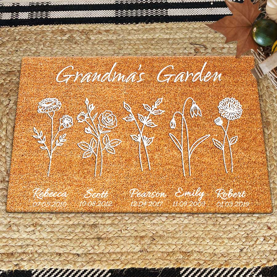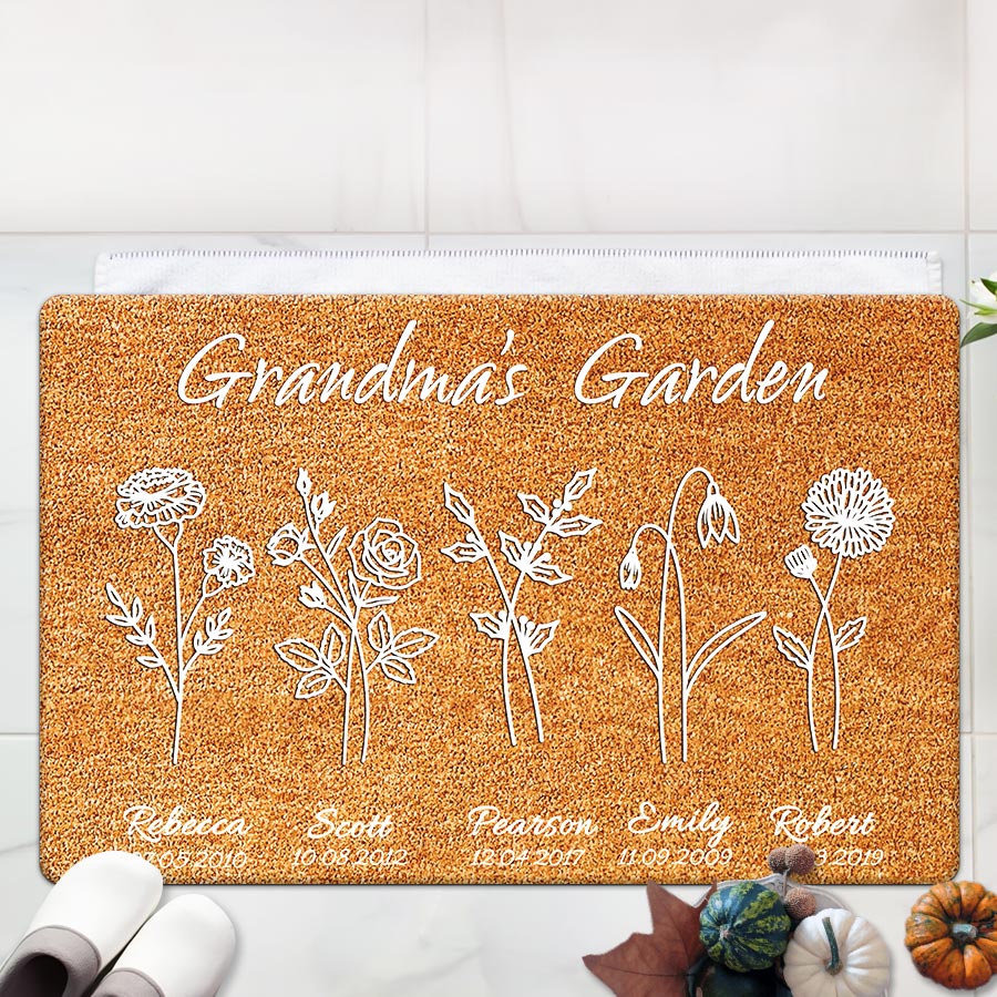 Personalized Mother’S Day Gifts Grandma | Grandmas Garden Gifts | Custom Grandma Doormats | Birth Flower Garden Gift With Grandkid Names