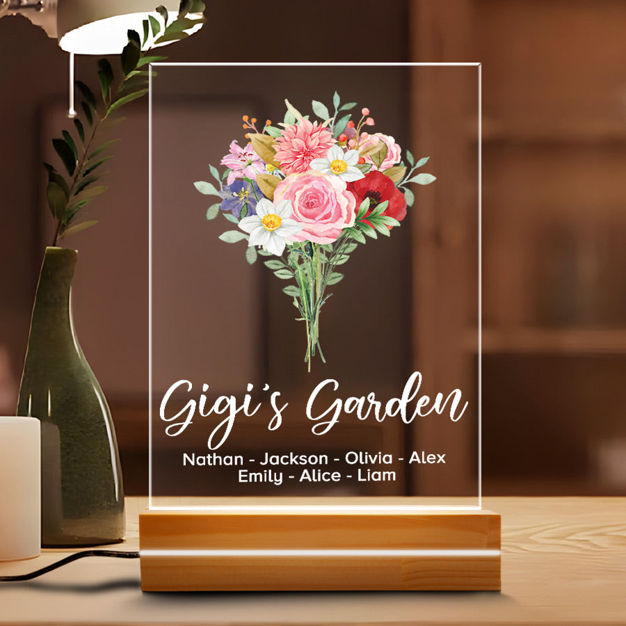 Welcome thoughtful garden art into Grandma's garden with our acrylic plaque. The beautiful customized grandma gifts | mothers day personalised gifts for grandma are laser engraved with your child's name and birth month, alongside a detailed illustration of their representative birth month flower. This extraordinary grandma garden gift is more than just a piece of art; it's a heartfelt tribute to the incredible woman who has made a lasting impact on your life.