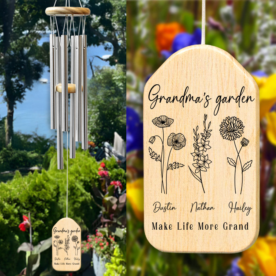 Customized Gifts For Grandma | Personalized Mother’S Day Gifts | Mothers Day Wind Chimes With Names | Grandma'S Garden Birth Month Flowers