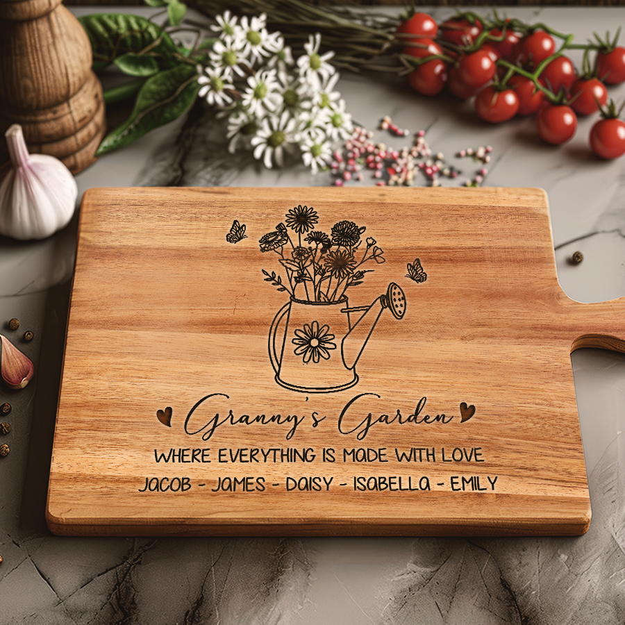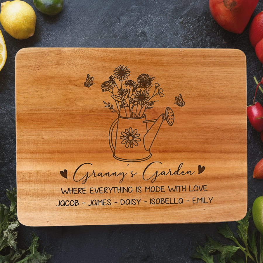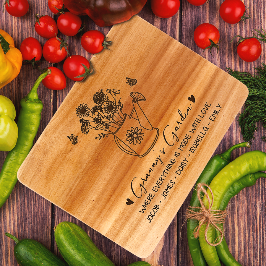 Celebrate grandma's love this Mother's Day with our custom engraved hardwood cutting board - customized grandma gifts | cutting board for grandma that keep on giving with functionality, beauty and memories for years to come. Personalize it FREE now for a treasure she will always cherish.
