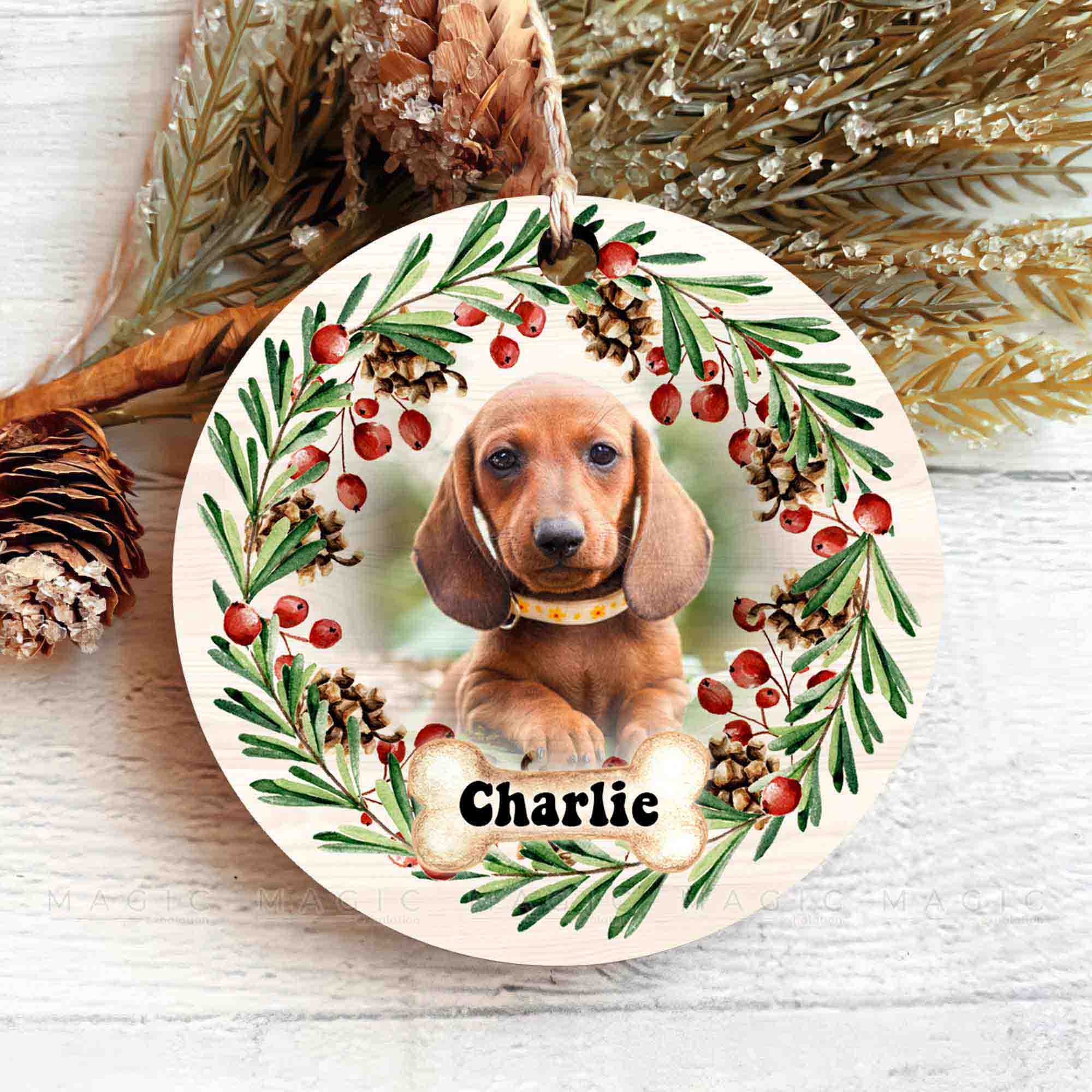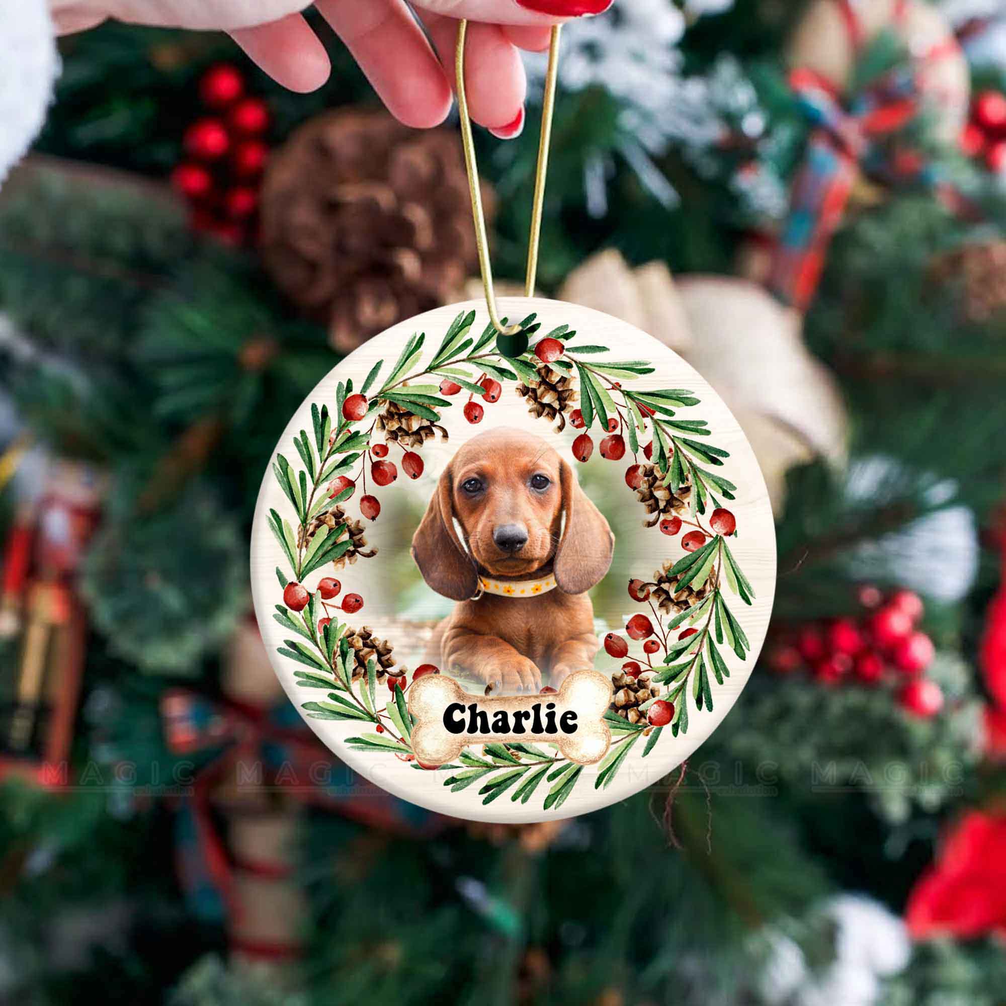 Custom Dog Ornament | Magic Exhalation is one of the perfect Personalized Christmas Ornaments to commemorate your furry friend. Custom Pet Ornaments make the perfect celebration of the little joys your pet brings to your life.