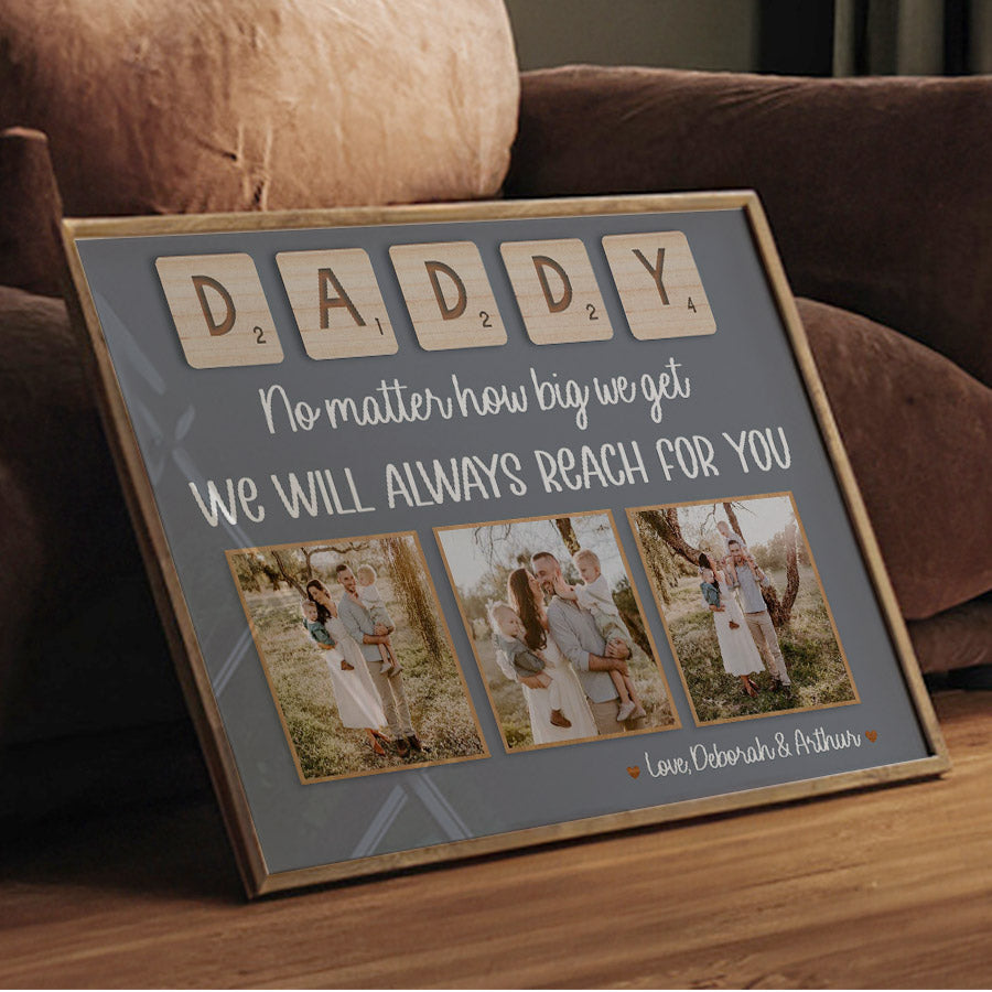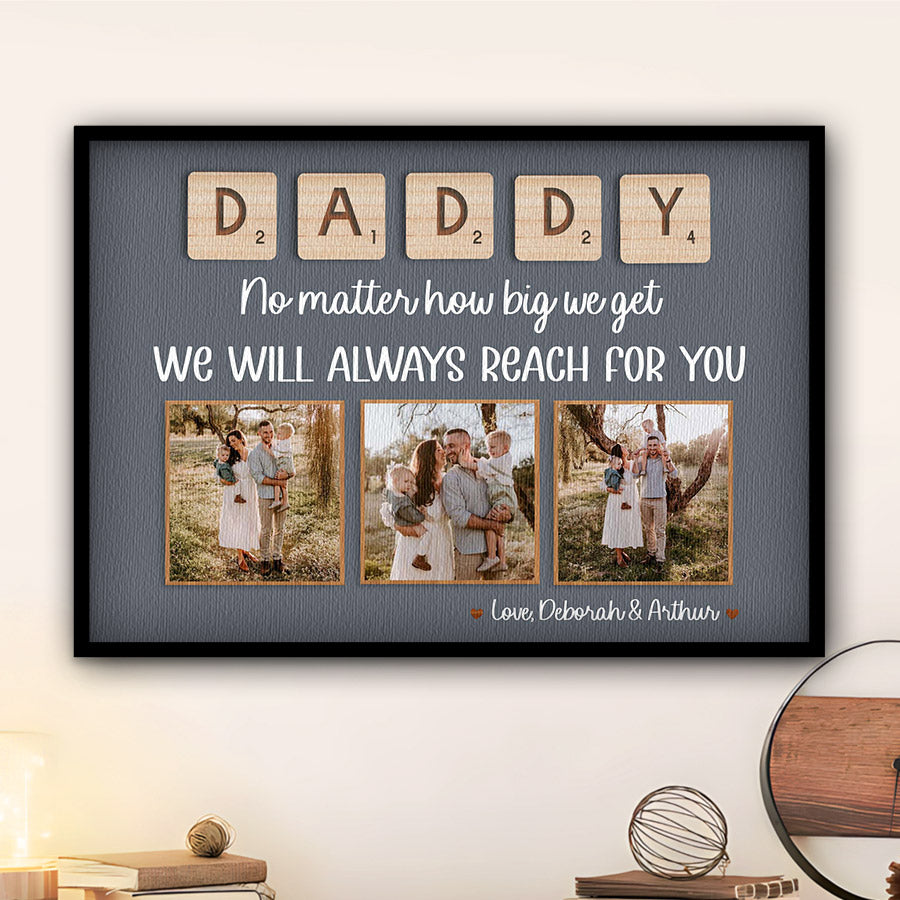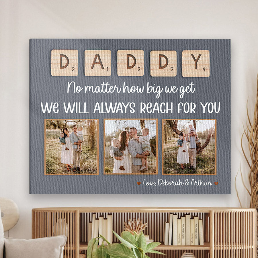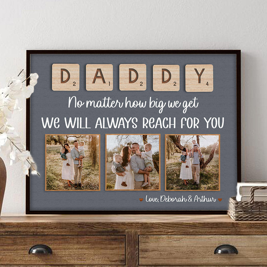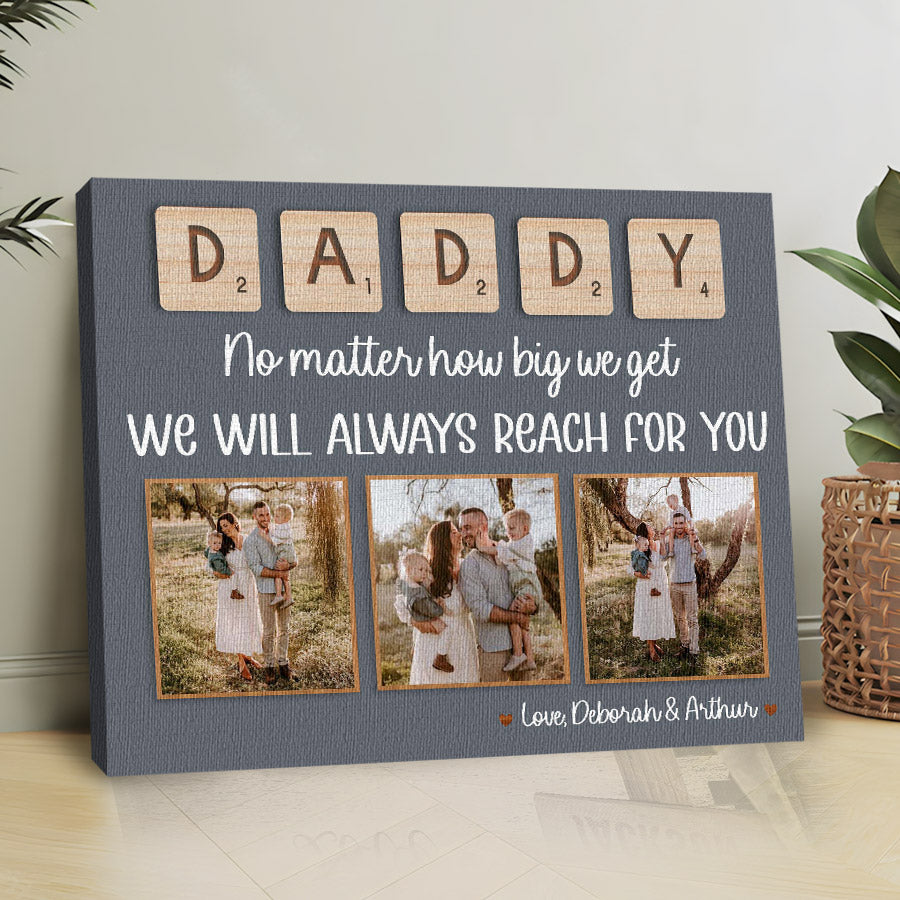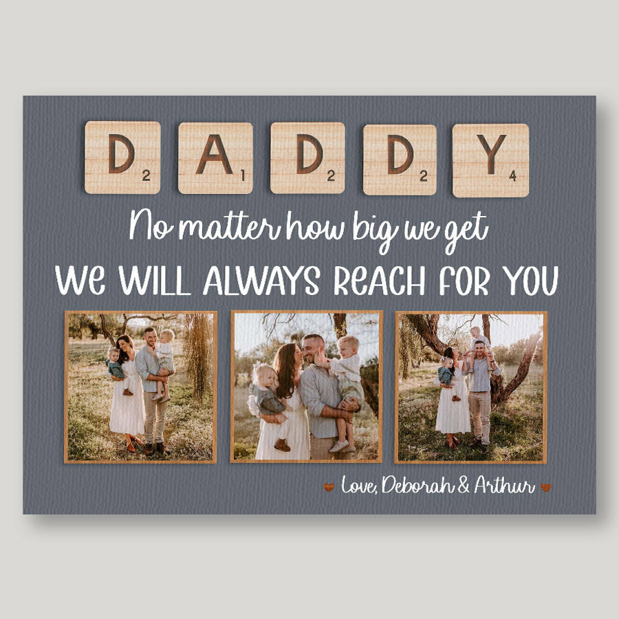Treat the new dad in your life to dad canvas gift | personlized fathers day gift that commemorates the baby's arrival and his first Father's Day. Our personalized photo canvas is sure to bring a smile seeing little ones grow up before their eyes. Customize it FREE now - he will love displaying this treasured memory for many years to come.