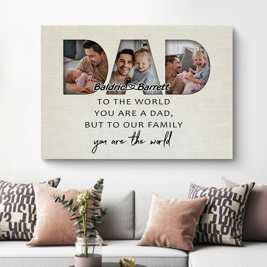Dad Custom Photo Canvas | To Our Family You Are the World