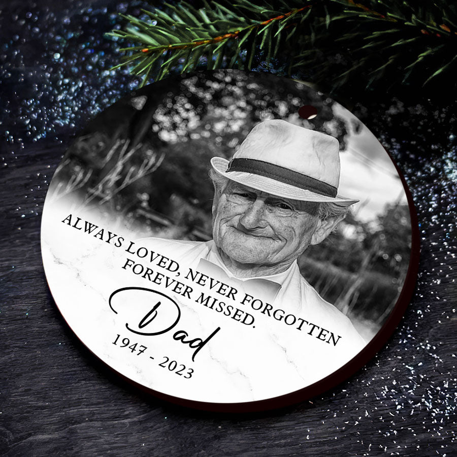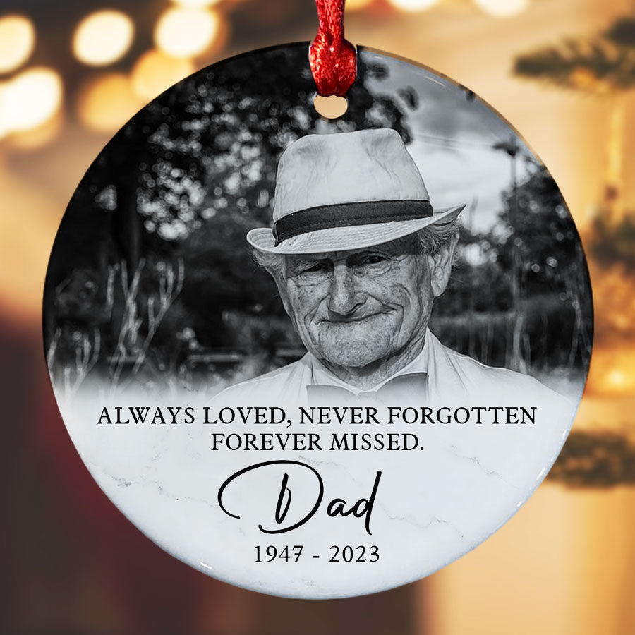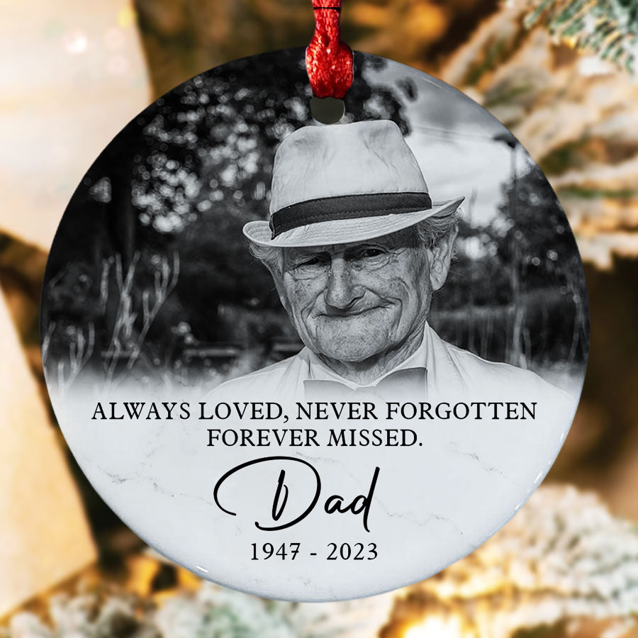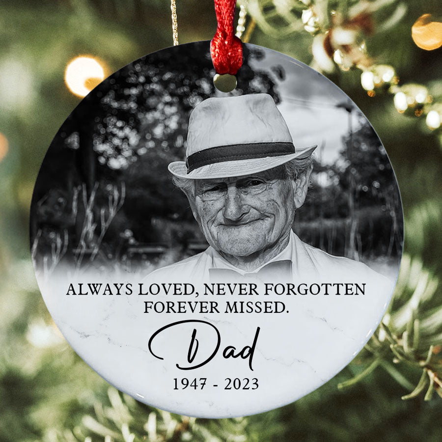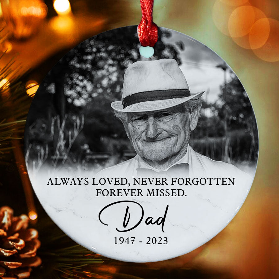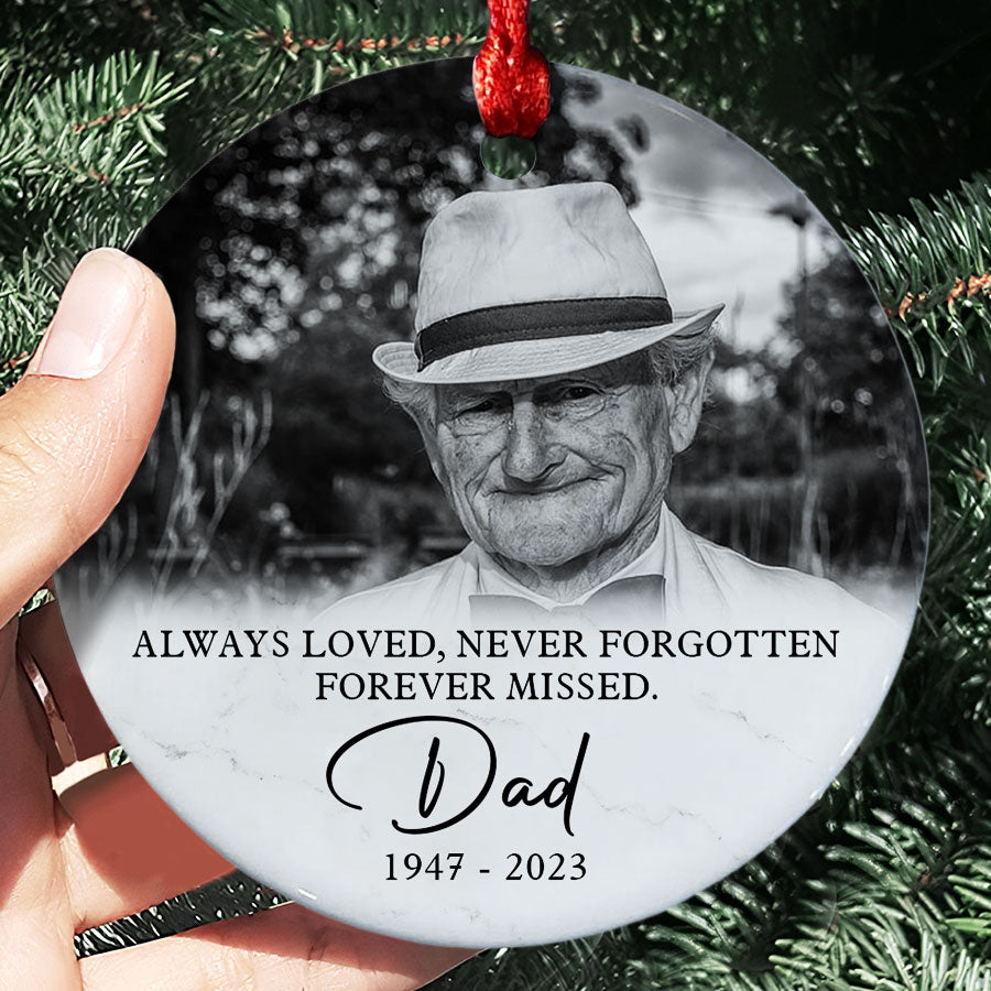 Honor precious memories with the meaningful dad memorial ornaments | custom memory ornaments with picture. As the holidays approach, it's common to feel the absence of loved ones no longer with us. However, keeping their spirit close helps bring comfort during this reflective season. Come and check out our Memorial Ornaments for the perfect Personalized Christmas Ornaments to warm up your loved ones this holiday.