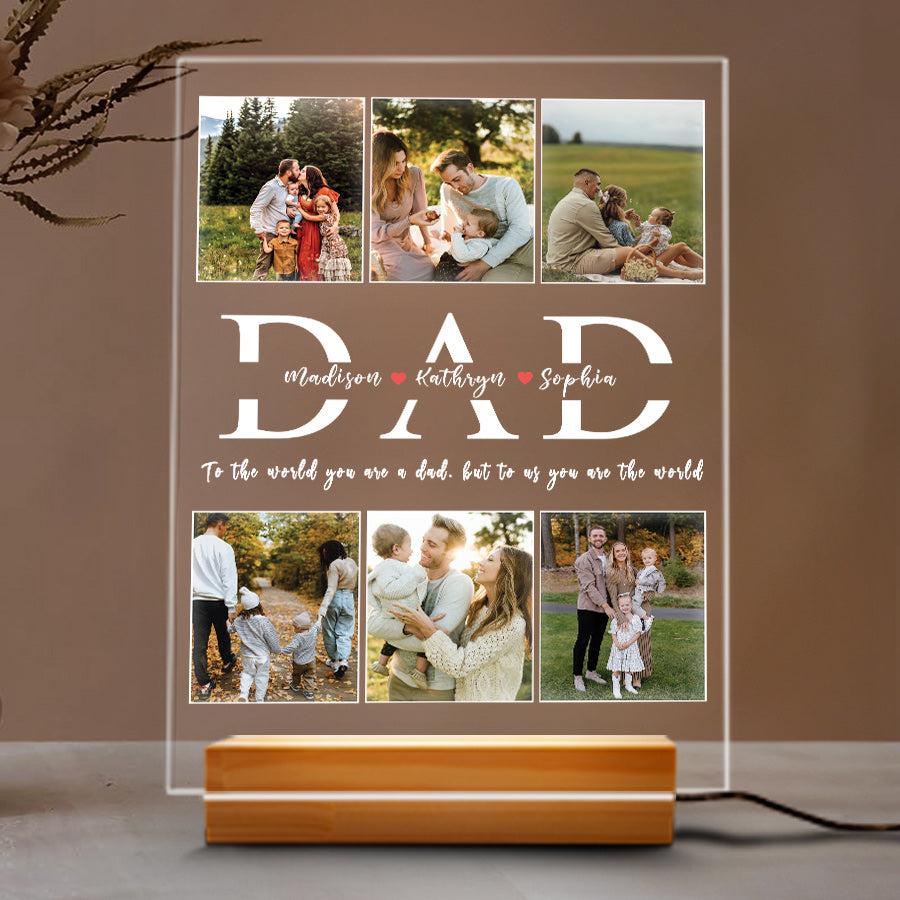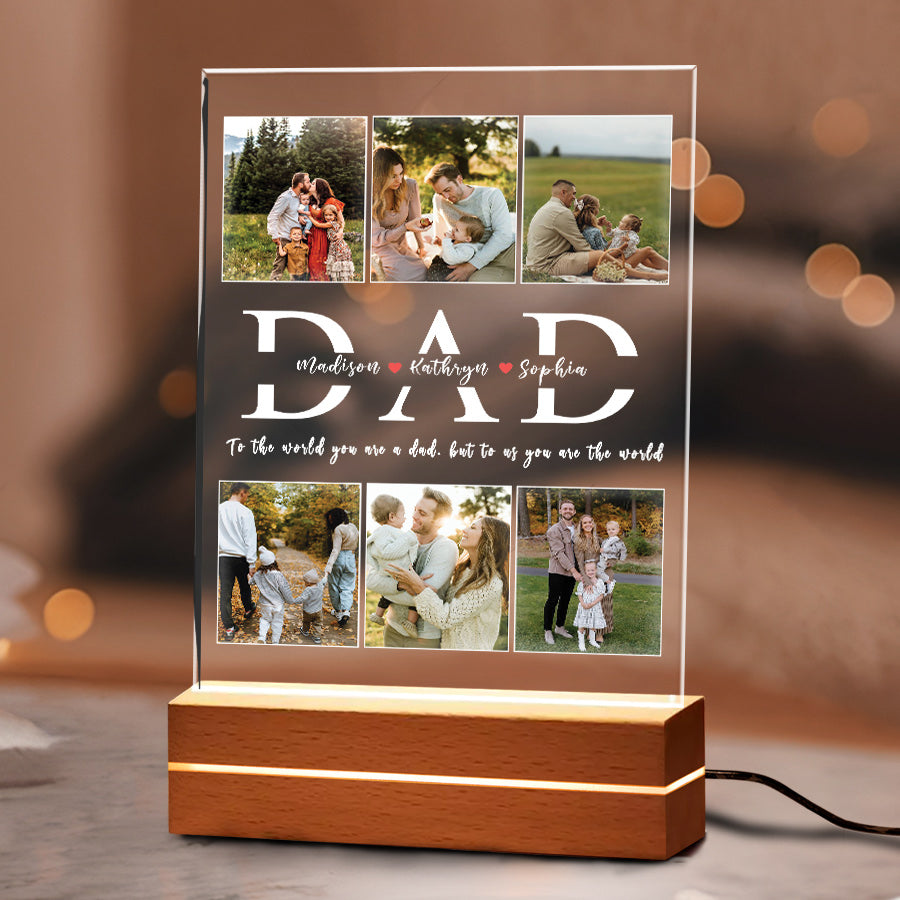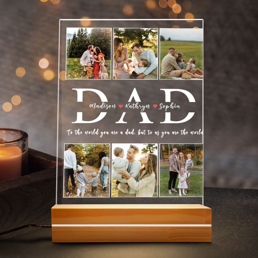 Give your dad something he'll love with this custom acrylic plaque. Order today and get dad night light | acrylic plaque custom | dad collage photo night light delivered in time for Father's Day! Buy now.