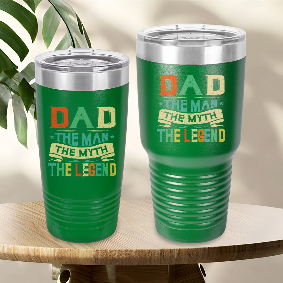 Custom engraved dad tumbler with a personal father's message or monogram, this tumbler makes a thoughtful gift for the dad who loves to stay hydrated and on the go.