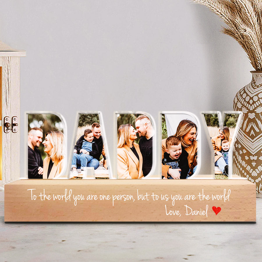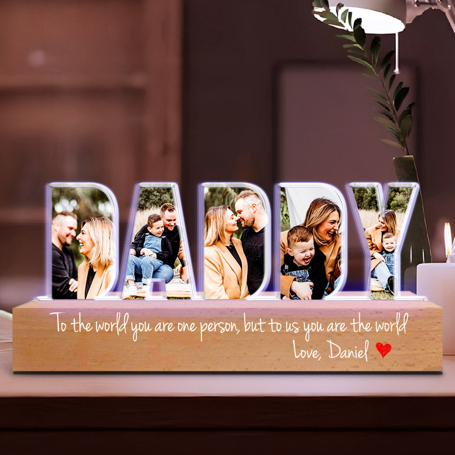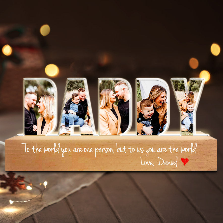 Give your daddy the daddy fathers day gift | custom dad photo night light | daddy to the word you are one person gift of an engraved plaque that he can proudly display in his home. This acrylic plaque can be personalized for free with his name and a short message of appreciation.