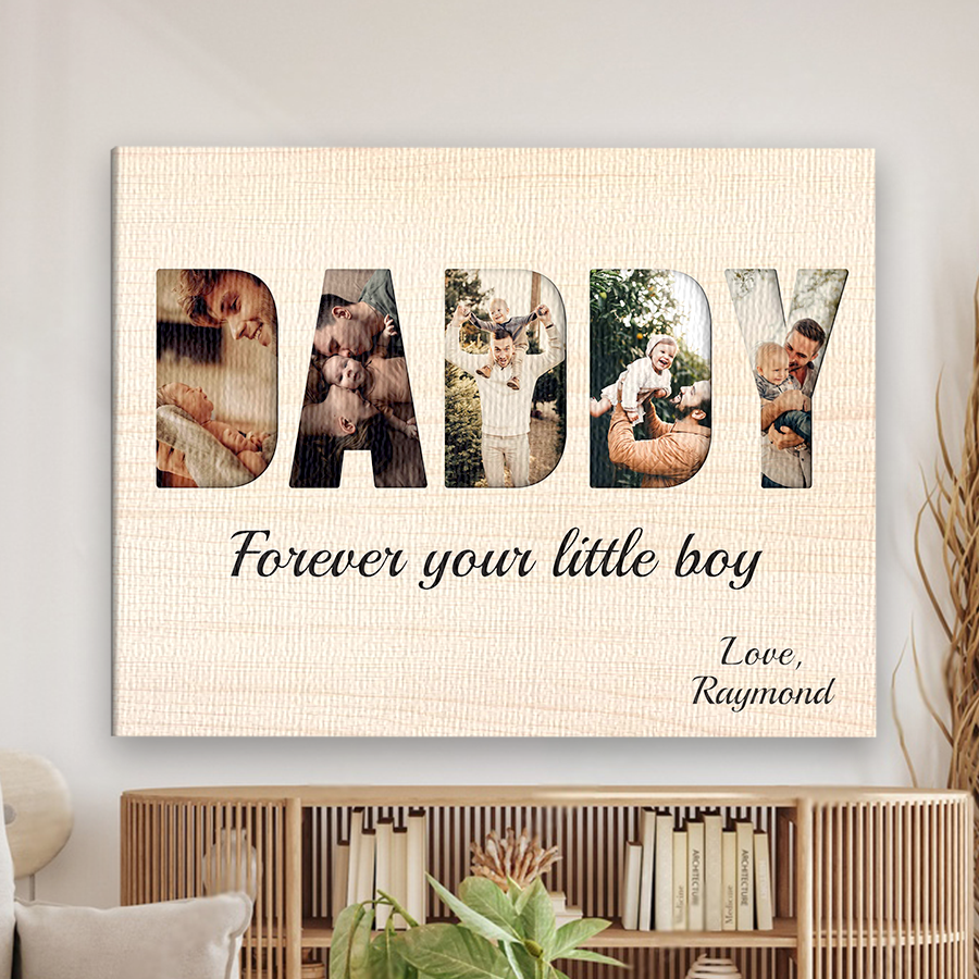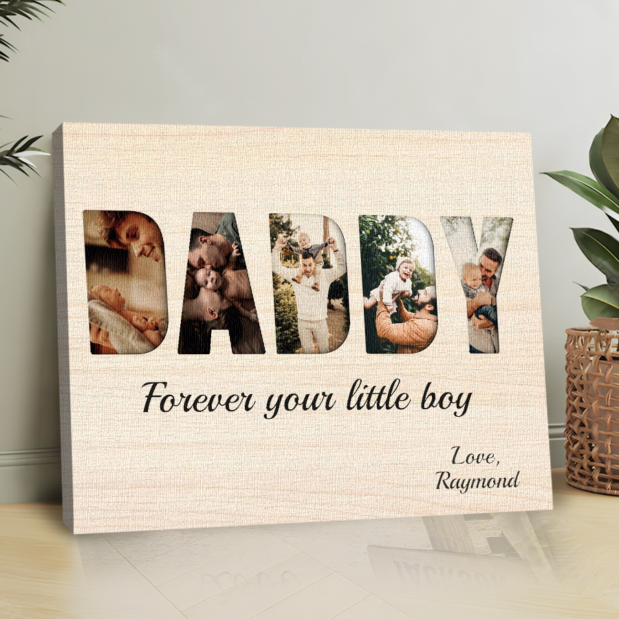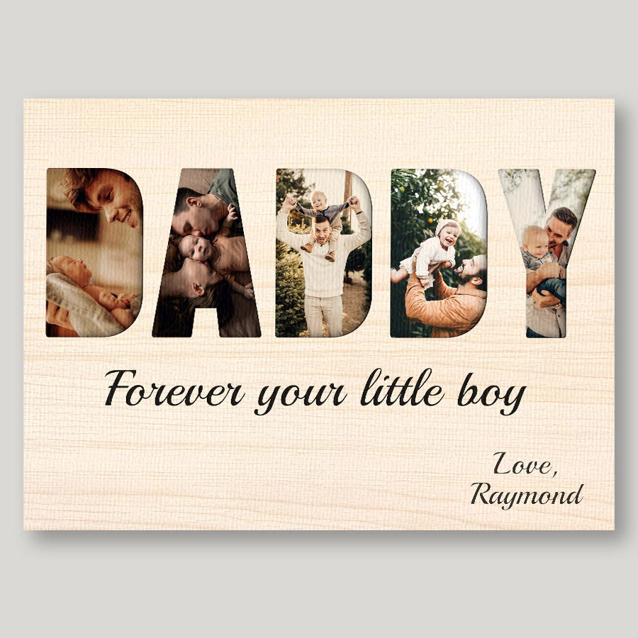 Treat the new dad in your life to daddy first fathers day gift | 1st time fathers day gift | personalized dad canvas that commemorates the baby's arrival and his first Father's Day. Our personalized photo canvas is sure to bring a smile seeing little ones grow up before their eyes. Customize it FREE now - he will love displaying this treasured memory for many years to come.