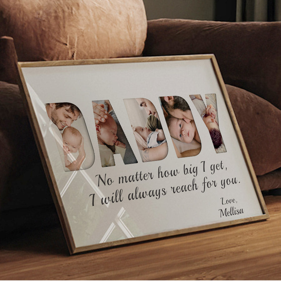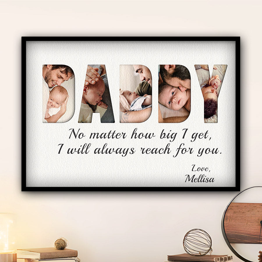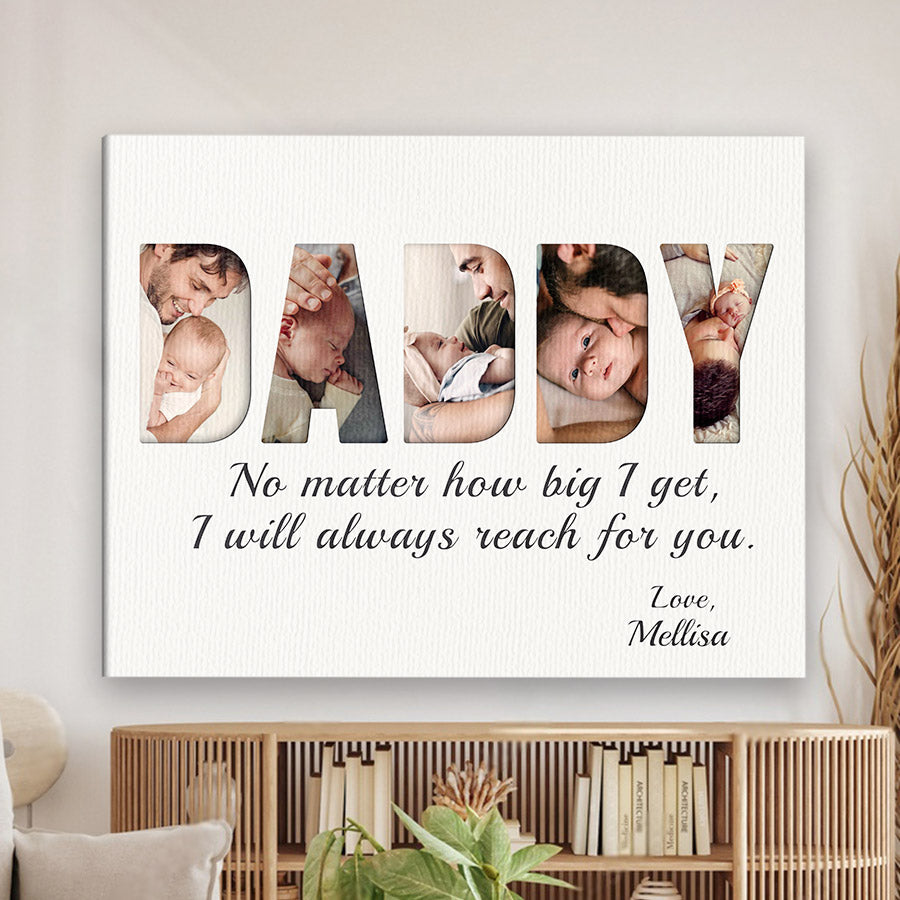 Treat the new dad in your life to daddy first fathers day gift | first time fathers day gift | 1st fathers day gift that commemorates the baby's arrival and his first Father's Day. Our personalized photo canvas is sure to bring a smile seeing little ones grow up before their eyes. Customize it FREE now - he will love displaying this treasured memory for many years to come.