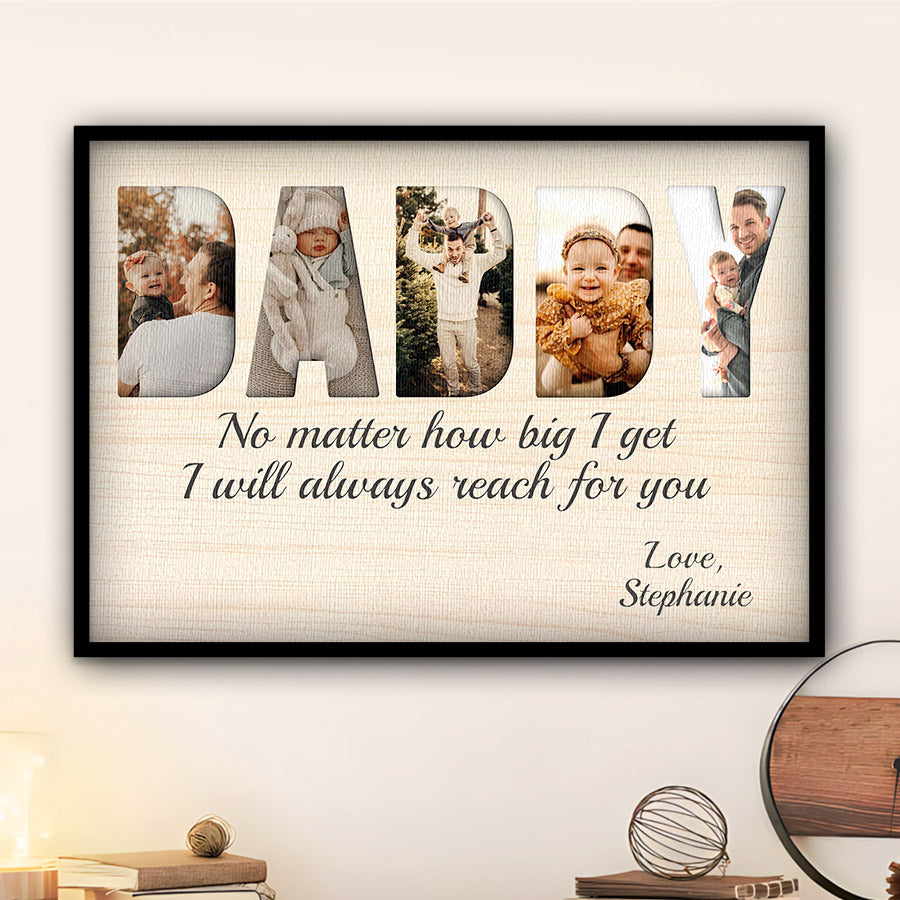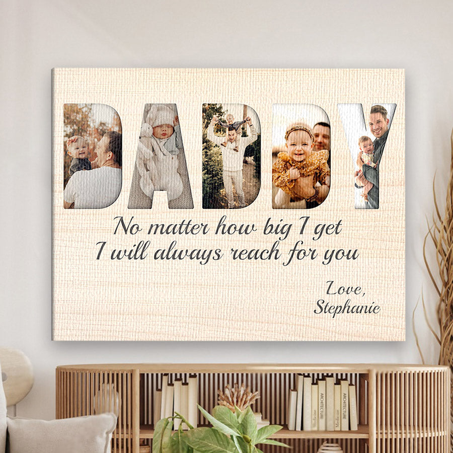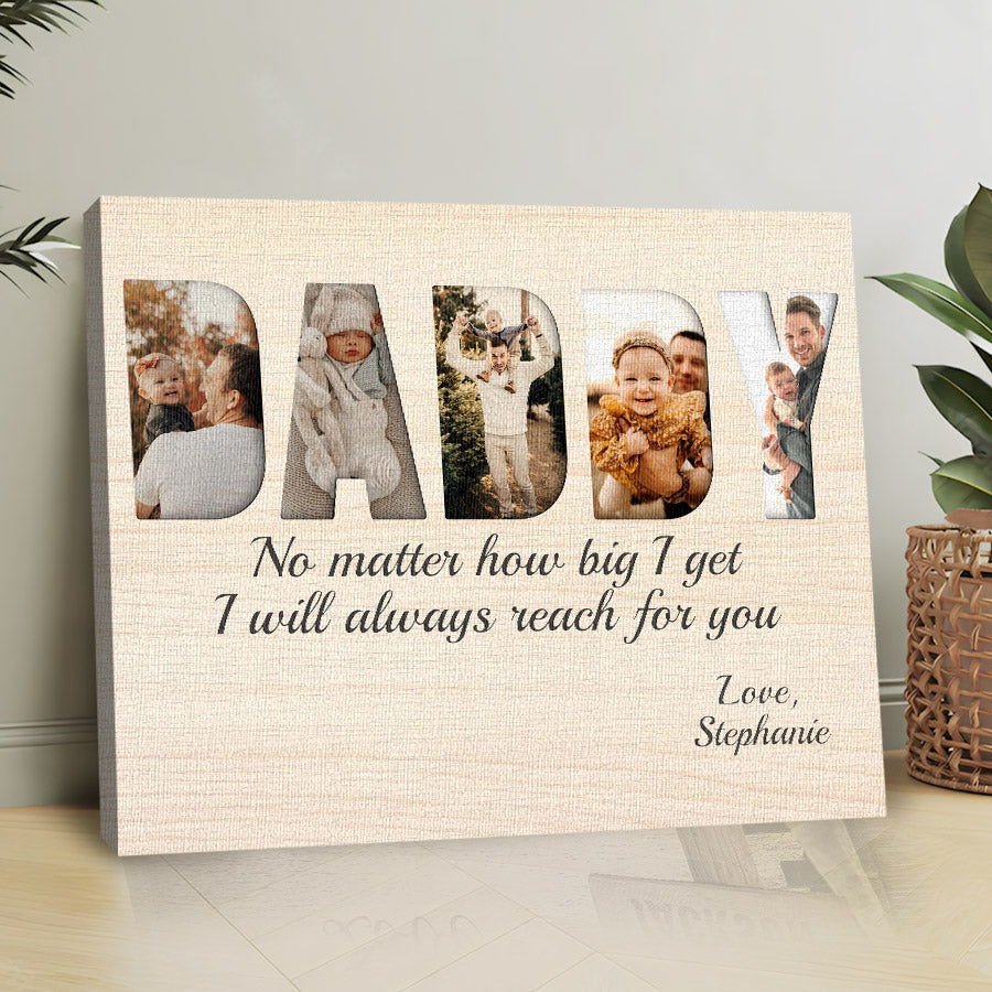Treat the new dad in your life to daddy first fathers day gift | gifts for first fathers day that commemorates the baby's arrival and his first Father's Day. Our personalized photo canvas is sure to bring a smile seeing little ones grow up before their eyes. Customize it FREE now - he will love displaying this treasured memory for many years to come.