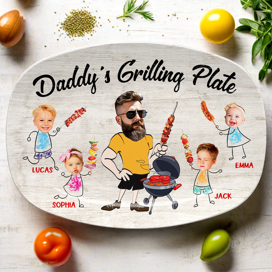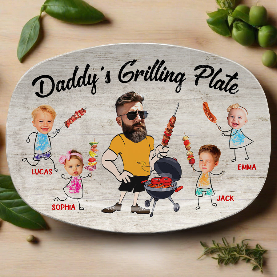 Our daddy’s grilling plate | daddy’s grill platter | custom photo father’s day grilling plate are a thoughtful way to add a special touch to Dad's space while expressing your love and appreciation. Whether hanging in his home office or man cave, this one-of-a-kind décor item will put a smile on his face every time he looks at it.