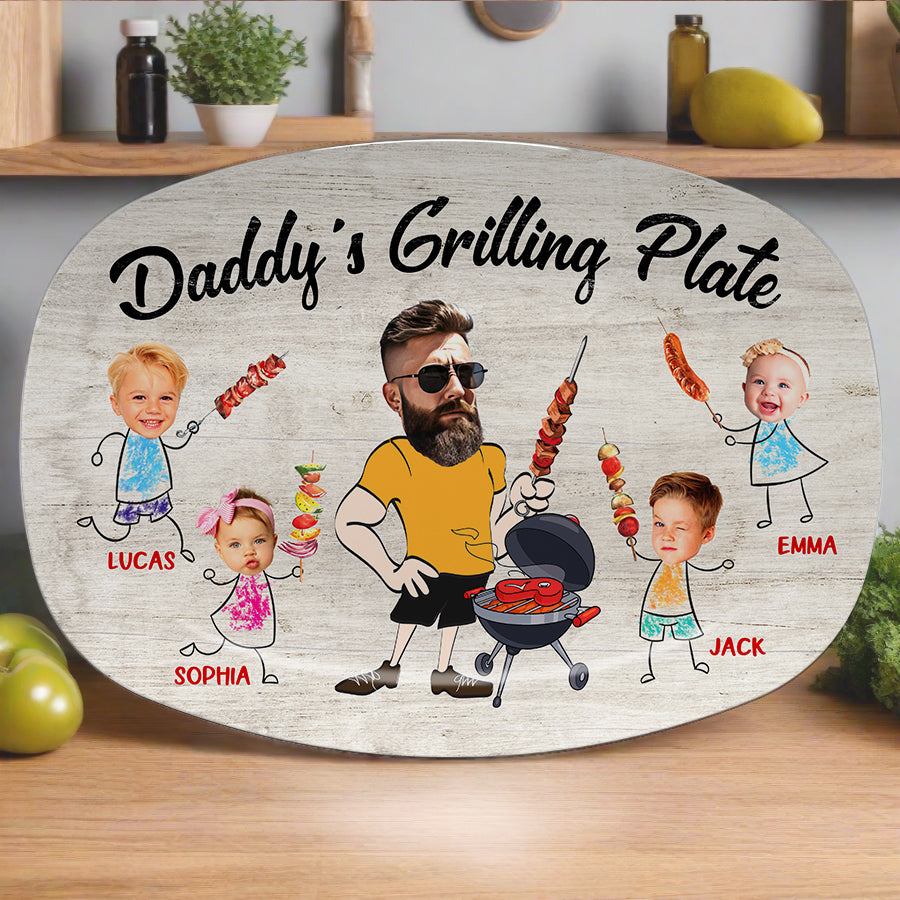 Customized with your family's photo or a meaningful saying, it allows Dad to proudly display your memories in his own special spot. No more shoved between useless knickknacks, your daddy’s grilling plate | daddy’s grill platter | custom photo father’s day grilling plate ensure the things that matter most to him are always on display.