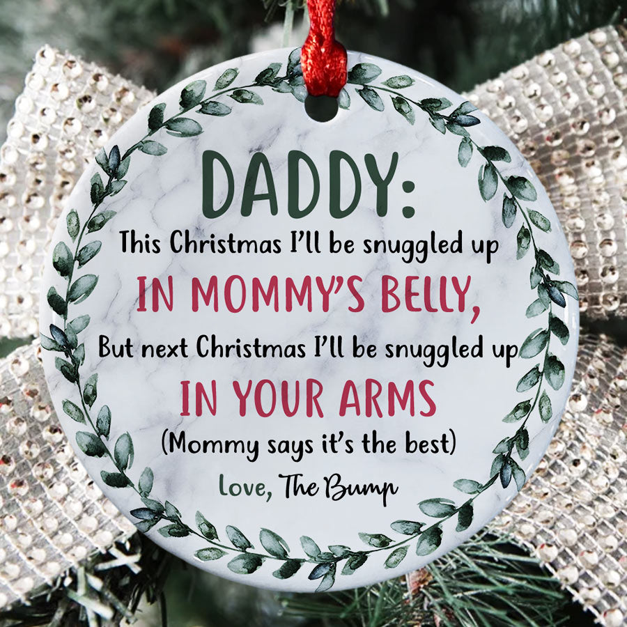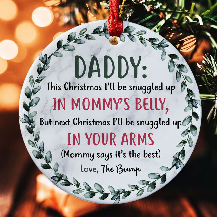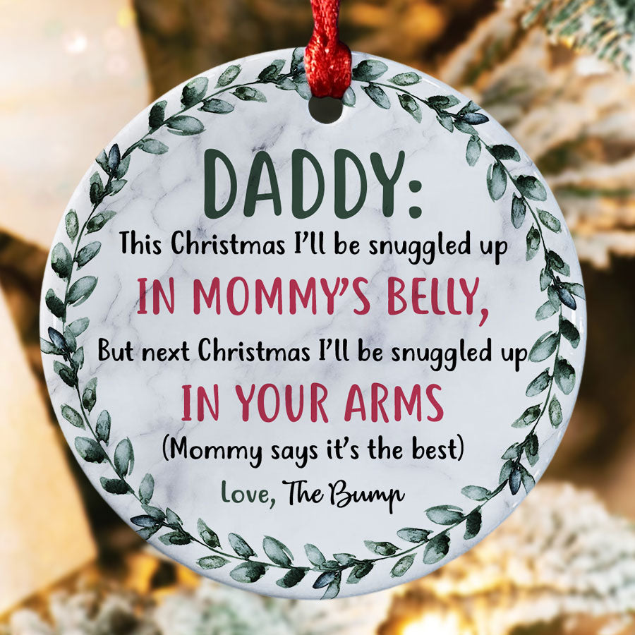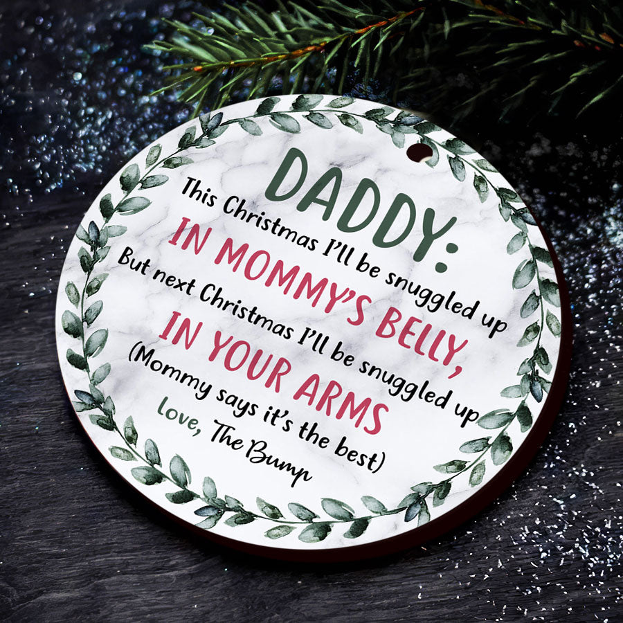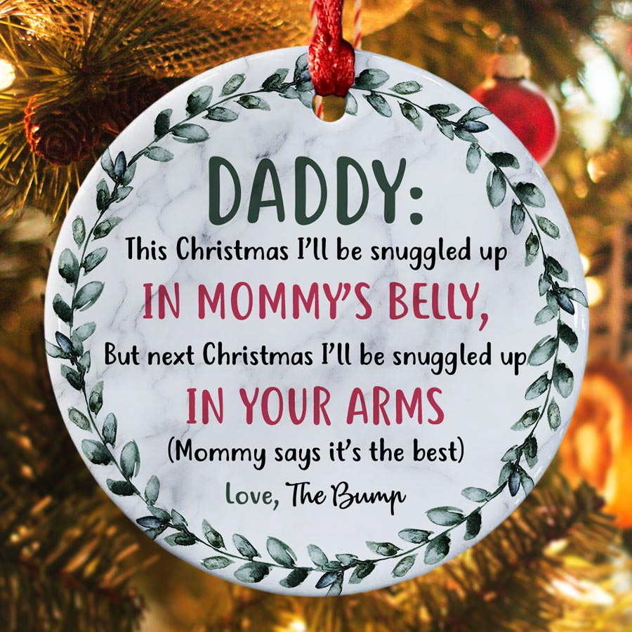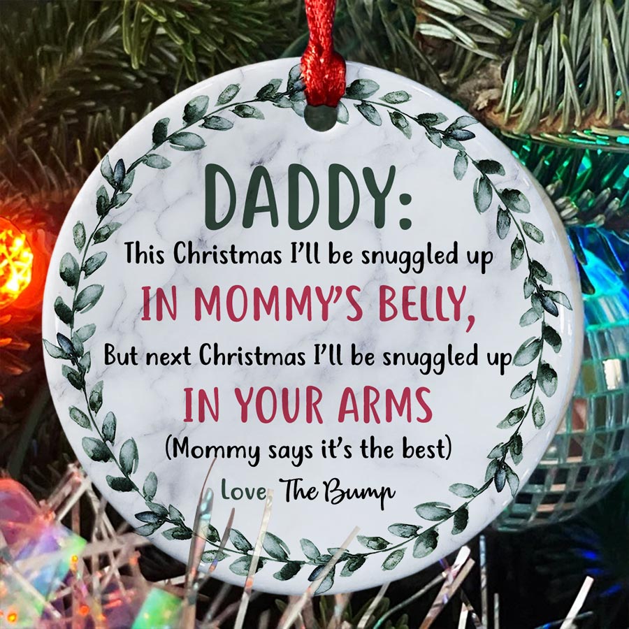Cherish your baby's first Christmas with unique keepsake daddy to be christmas ornament. As your loved one celebrates their little one's inaugural holiday season, gift them an ornament that will spark joy for years to come. Each time their tree goes up, this special decoration will transport them back to their baby's first magical Christmas memories - from tiny matching pajamas to tiny hands grasping ornaments. This babys first ornament is the most special Personalized Christmas Ornaments just for you to celebrate this wonderful occasion.