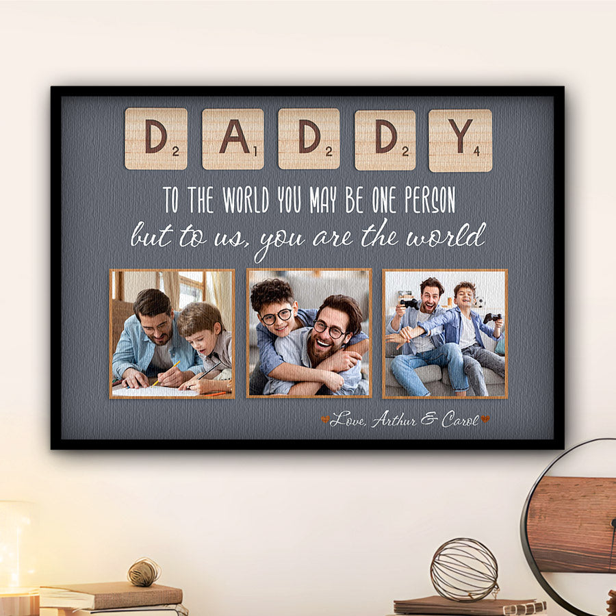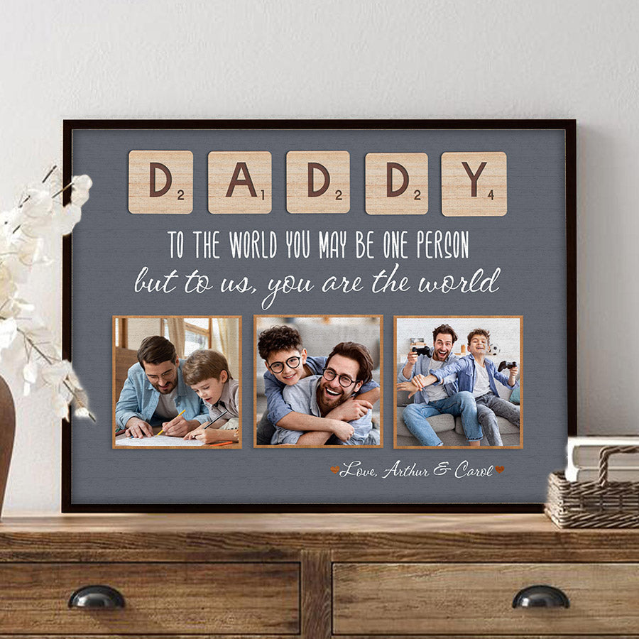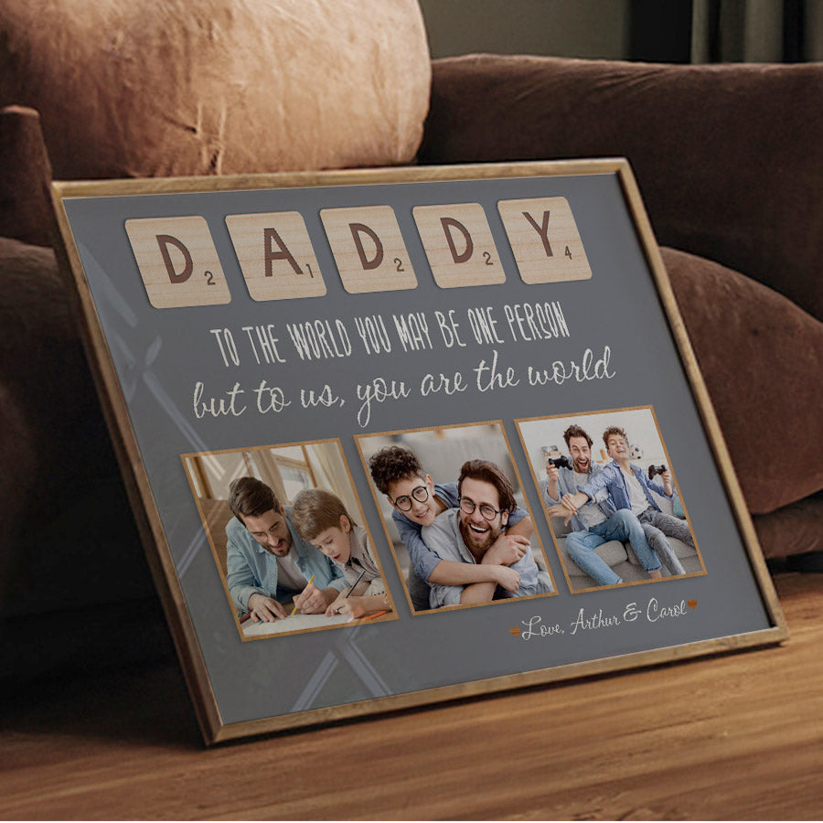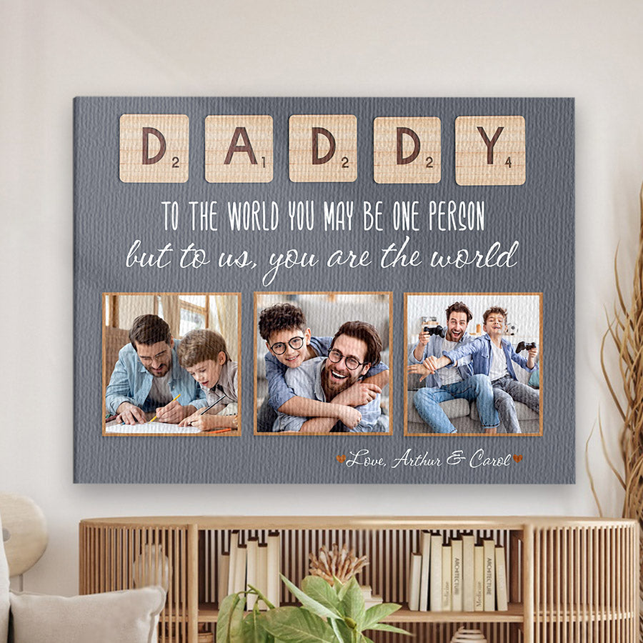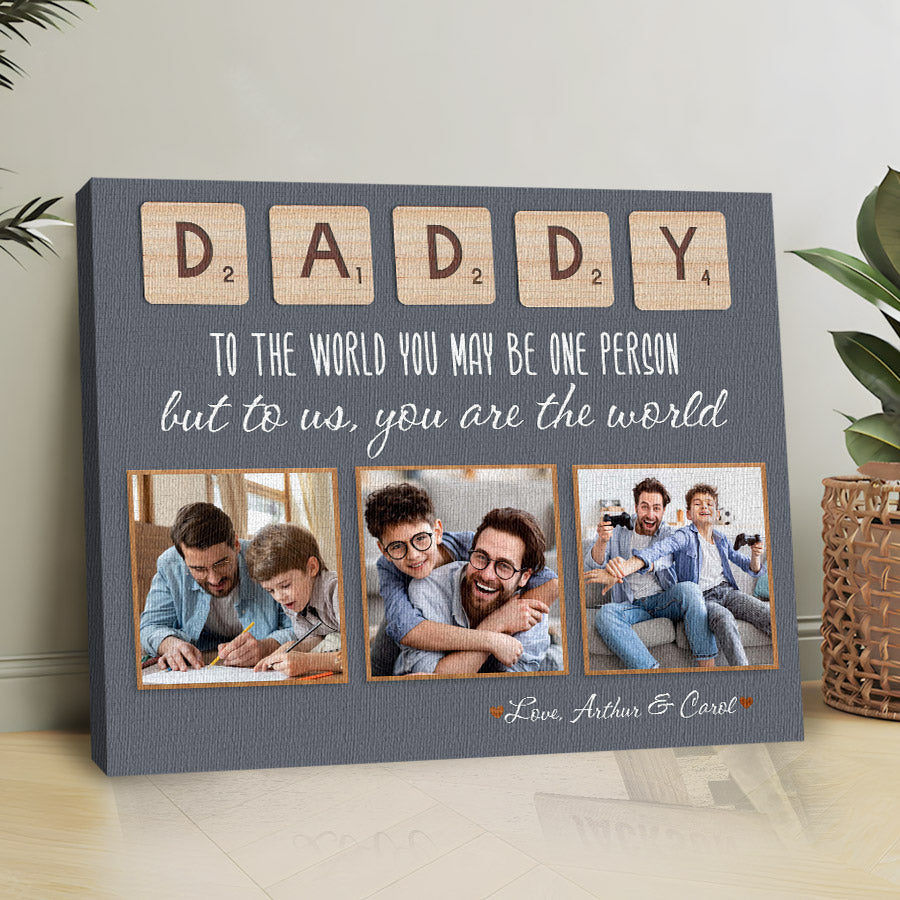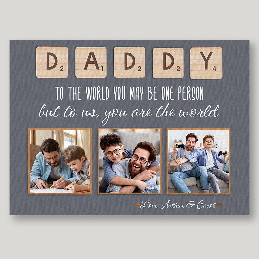 The crisp resolution of this daddy to the word you may be one person canvas | fathers day gift allows you to select photos with fine details that will be preserved for years to come. But more than just pictures, this gift conveys the deep love, gratitude and respect you feel for everything Dad has done for you. On Father's Day, a day set aside to honor fatherhood and all the hard work dads do every day, this personalized canvas is a thoughtful way to let him know how much you value him and celebrate all he has provided throughout the years.