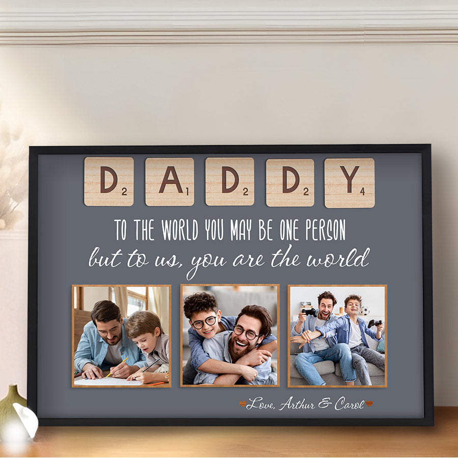 What better way to show your appreciation for Dad than a daddy to the word you may be one person canvas | fathers day gift that captures memories you've created together over the years? This high-quality gift comes ready to be customized with photos that will bring a smile to his face each time he looks at it. From childhood pictures to recent family vacations, you can select images that remind him of how much he means to you and your family.
