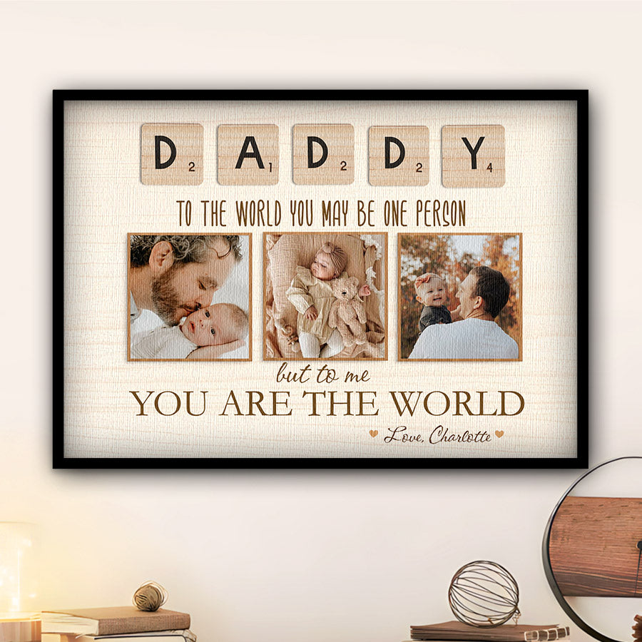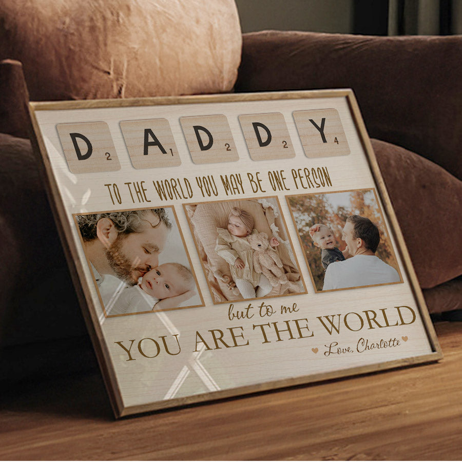 Our personalized canvas décor makes the perfect daddy to the world you are one person canvas | personalized photo collage canvas. For a new father, nothing compares to the joy, love, and responsibility that comes with embracing his new role.