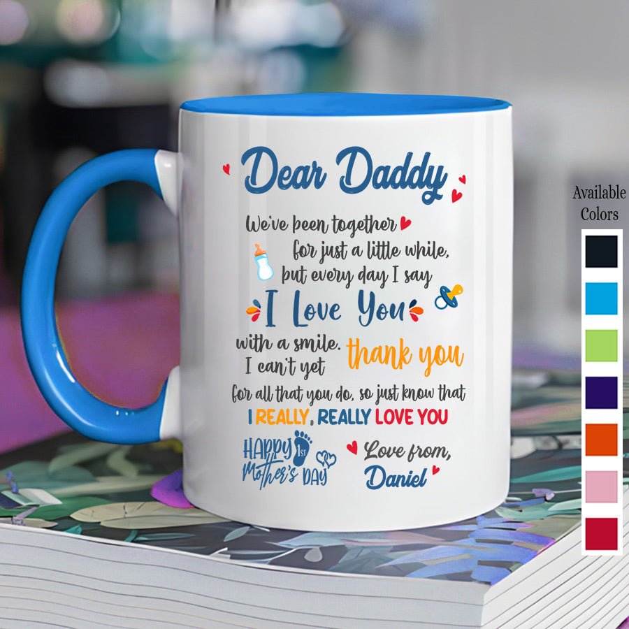 Make the moment special with a thoughtful and one-of-a-kind First Fathers Day Gift! Giving a mug as a first Fathers Day gift is a thoughtful gesture that signifies the cherished moments you have shared. But a daddys first fathers day mug is so much more. They have witnessed decades of life, supported us through every challenge and triumph, and given us unconditional love through it all. To commemorate the moments you have shared and the lasting impact they have left on you seems only fitting.