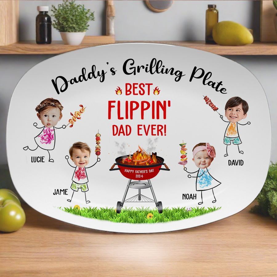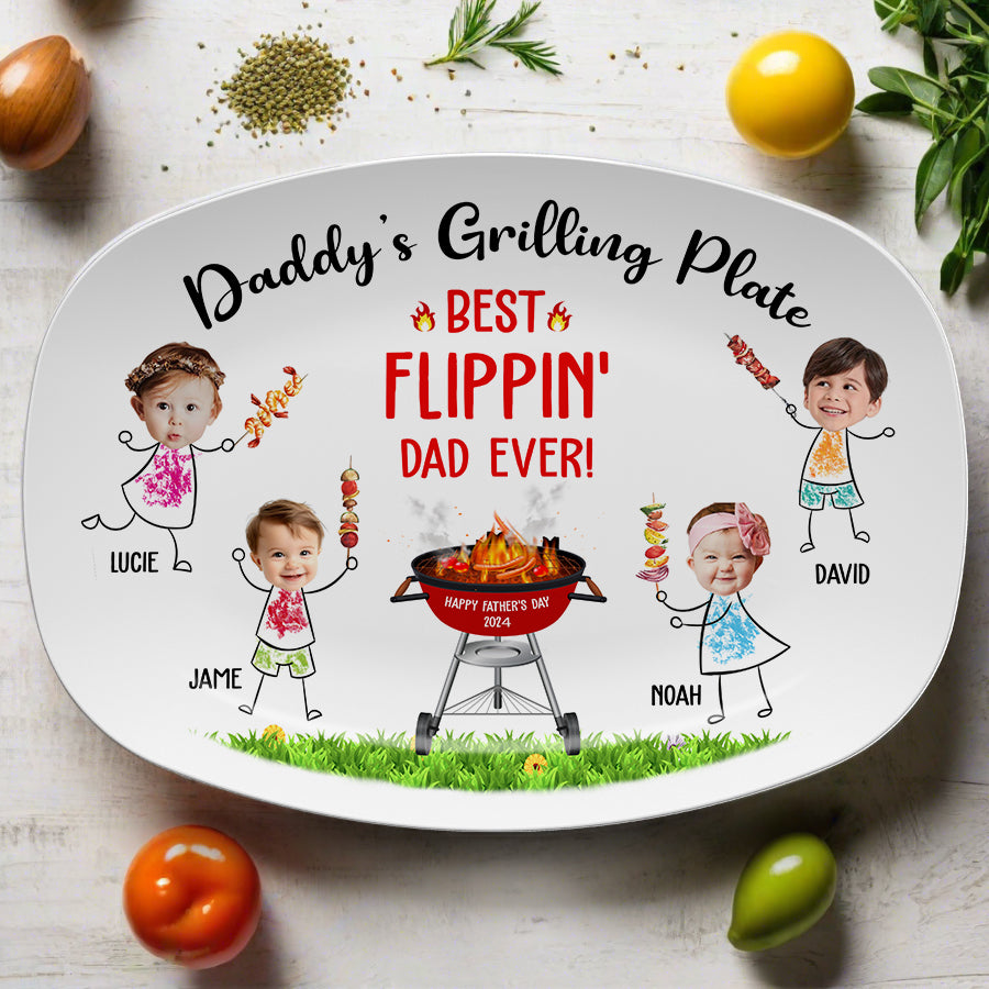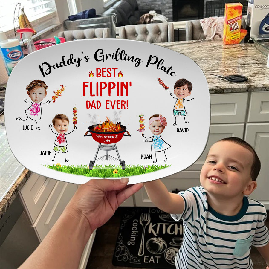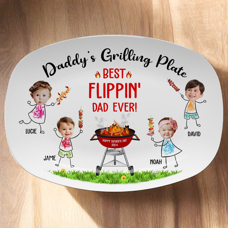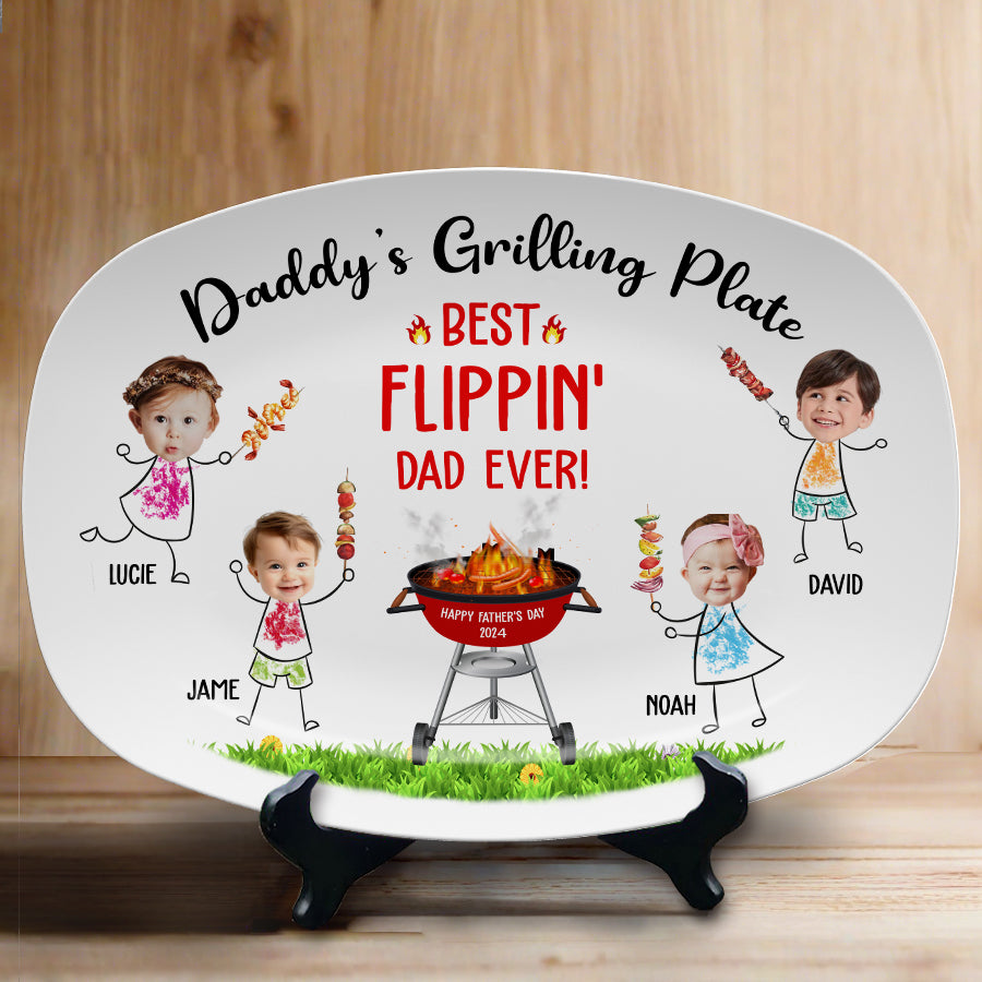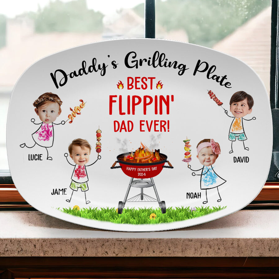 Customized with your family's photo or a meaningful saying, it allows Dad to proudly display your memories in his own special spot. No more shoved between useless knickknacks, your daddys grilling platter | best flipping dad ever | custom baby face grilling plate for father’s day ensure the things that matter most to him are always on display.