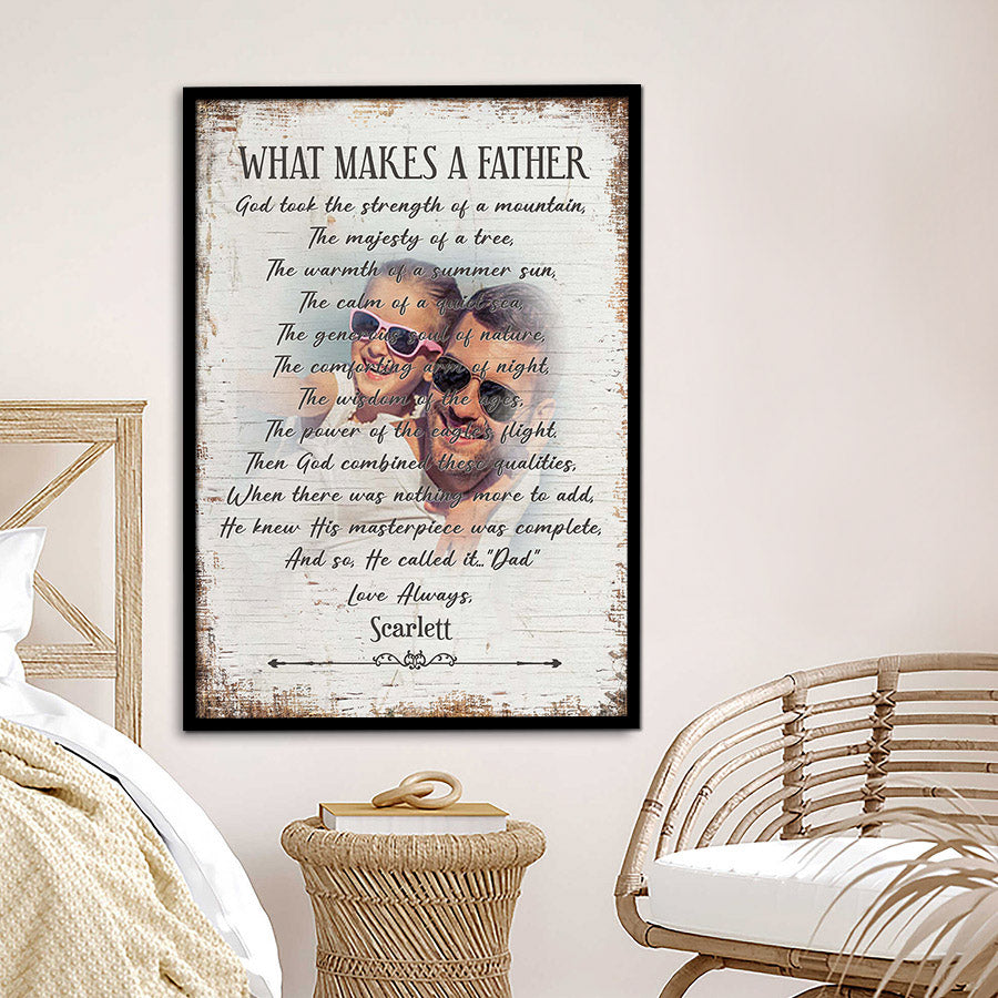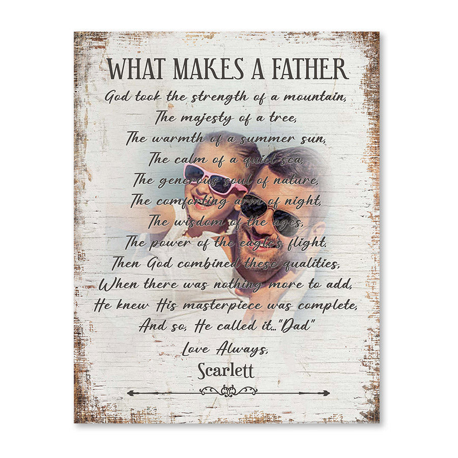 The crisp resolution of this daughter dad personalized gifts | what makes a father allows you to select photos with fine details that will be preserved for years to come. But more than just pictures, this gift conveys the deep love, gratitude and respect you feel for everything Dad has done for you. On Father's Day, a day set aside to honor fatherhood and all the hard work dads do every day, this personalized canvas is a thoughtful way to let him know how much you value him and celebrate all he has provided throughout the years.