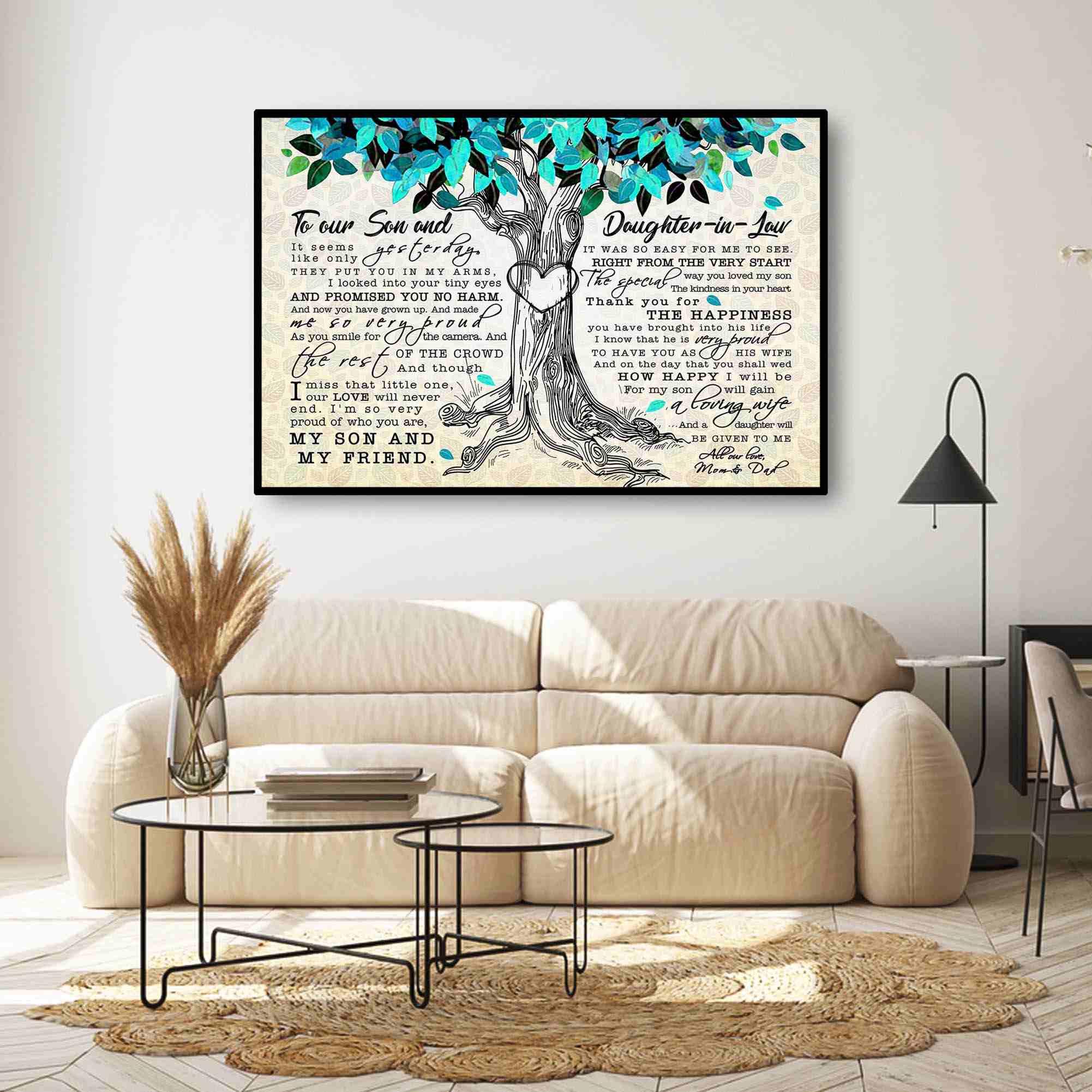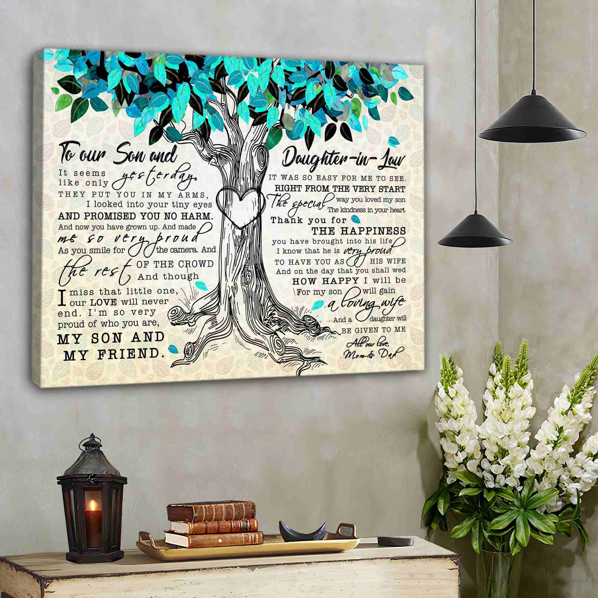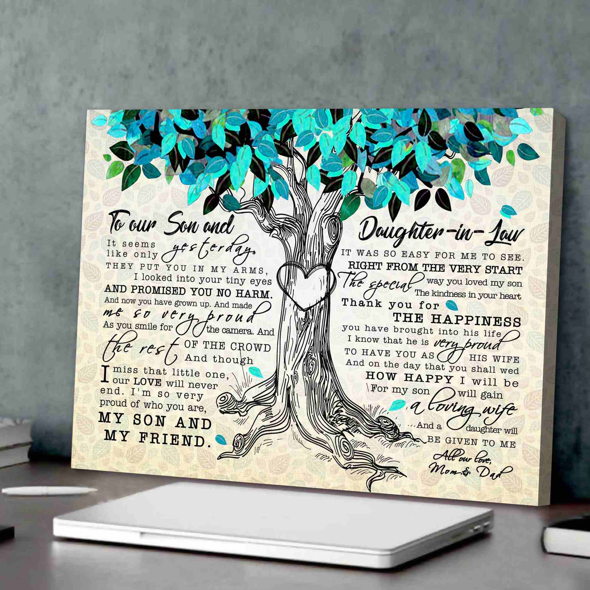 Best Daughter In Law Gifts Canvas Wall Art, Custom Family Tree Of Life Unique Wedding Gifts.