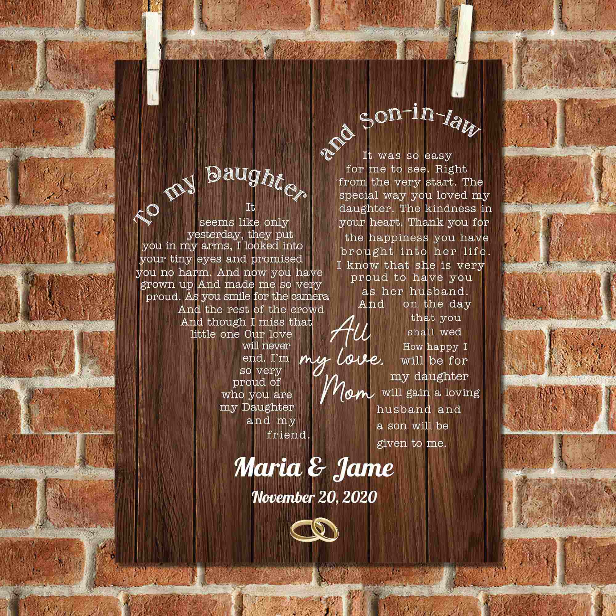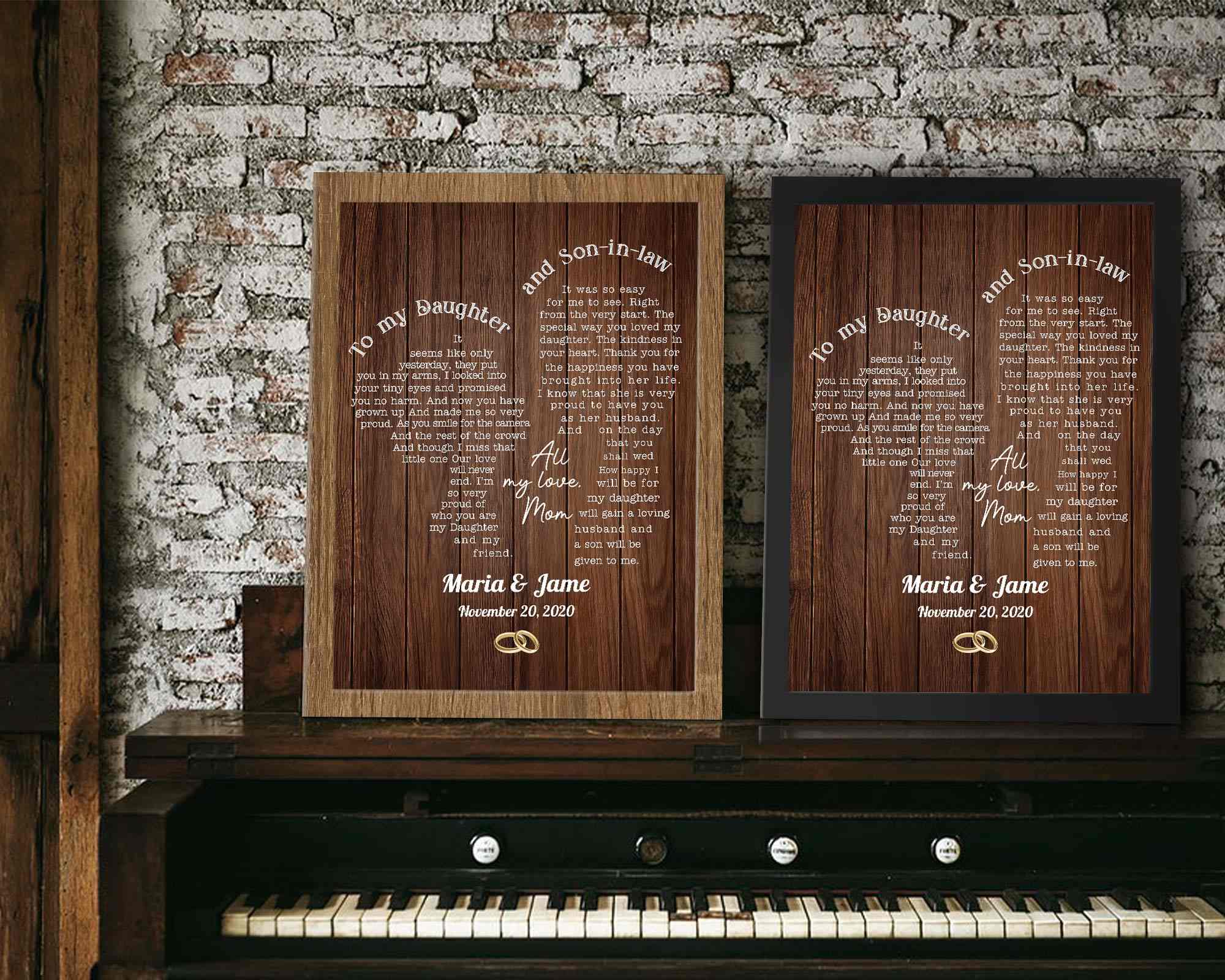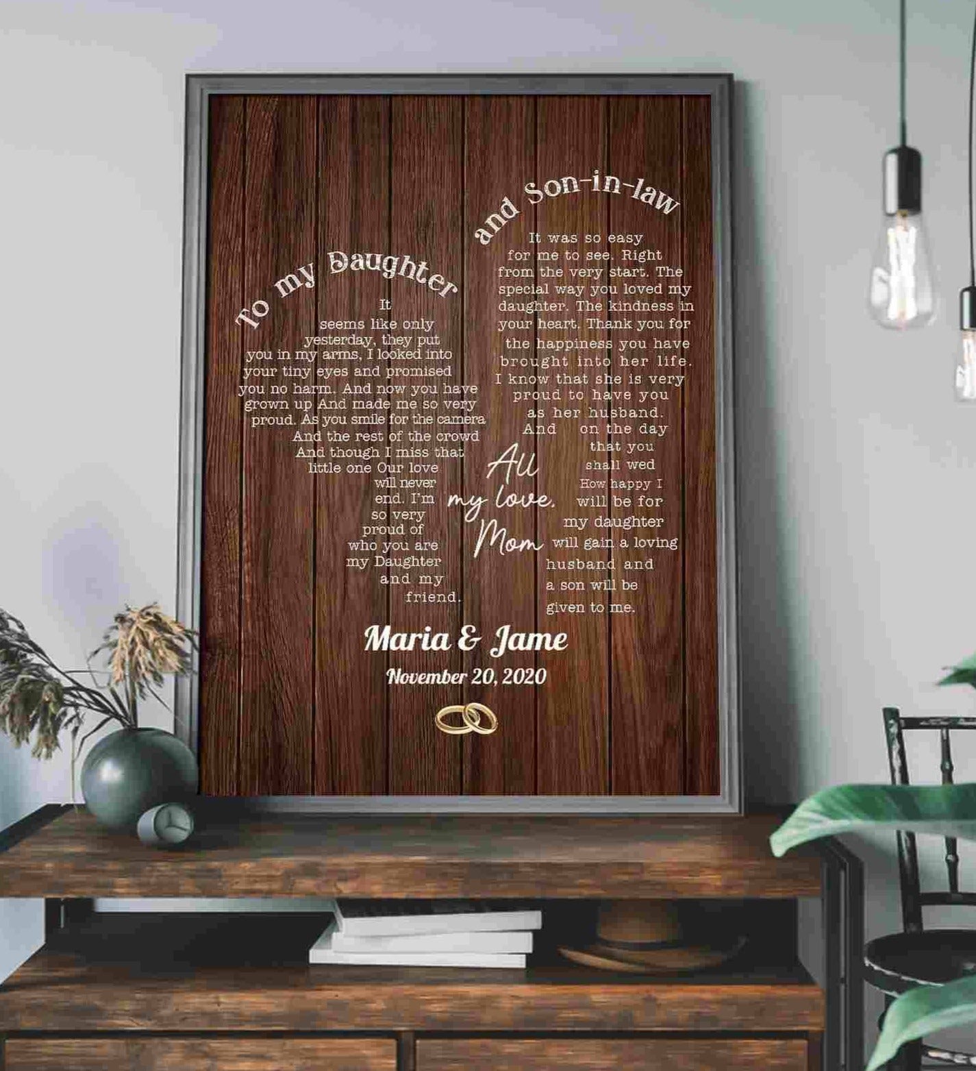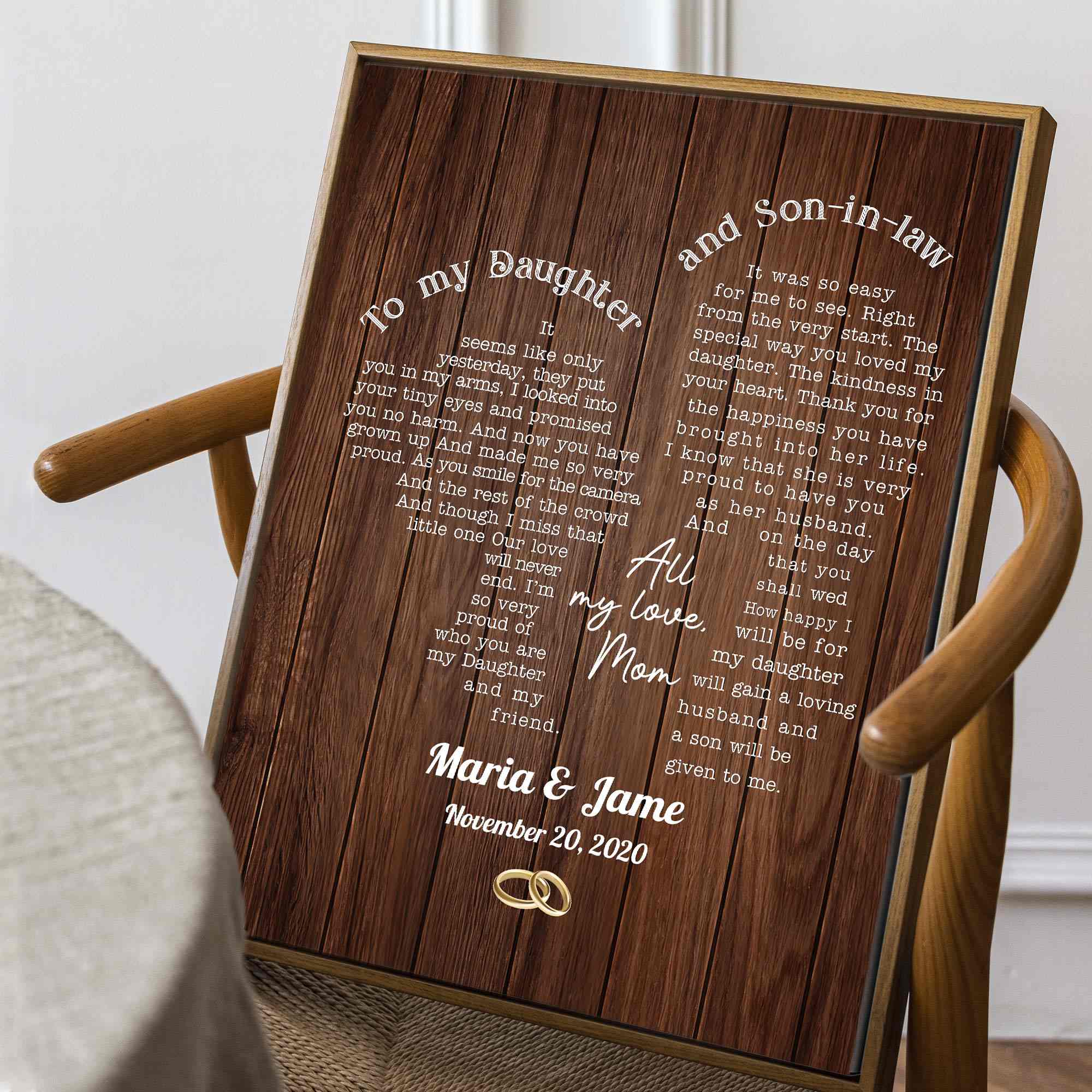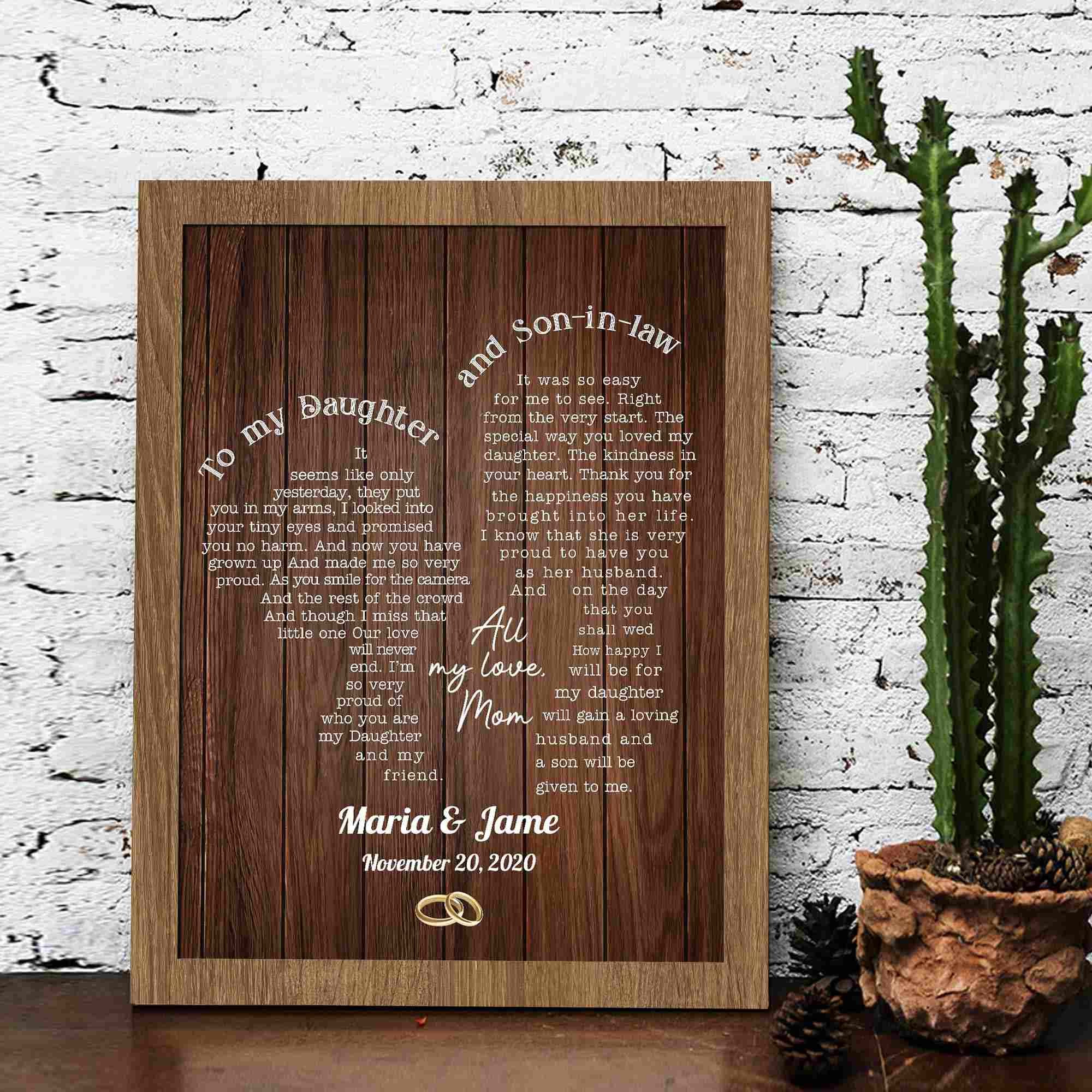 Custom Wedding Gifts For Daughter In Law & My Son, Wooden Plaque Canvas Wedding Day Gift For Bride.
