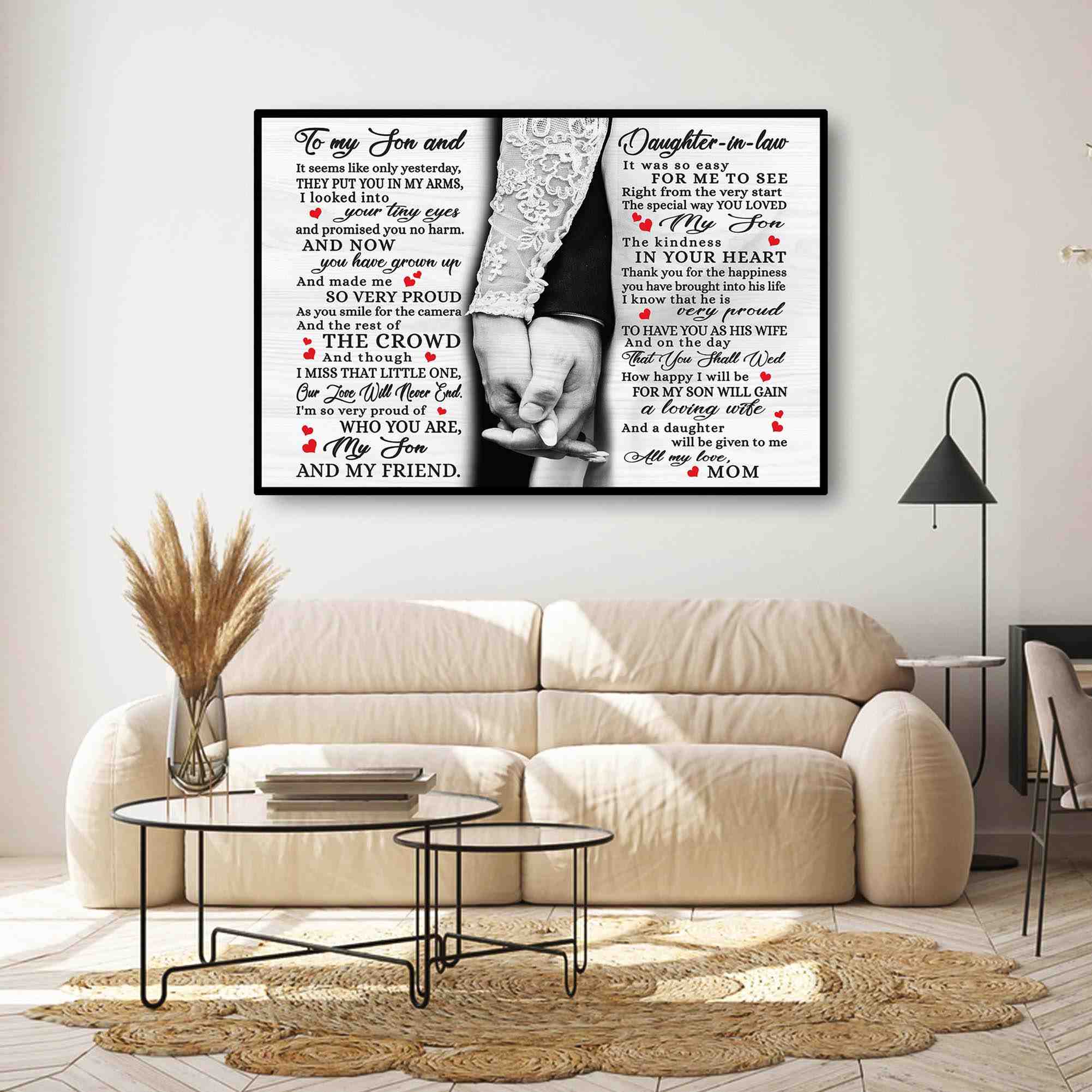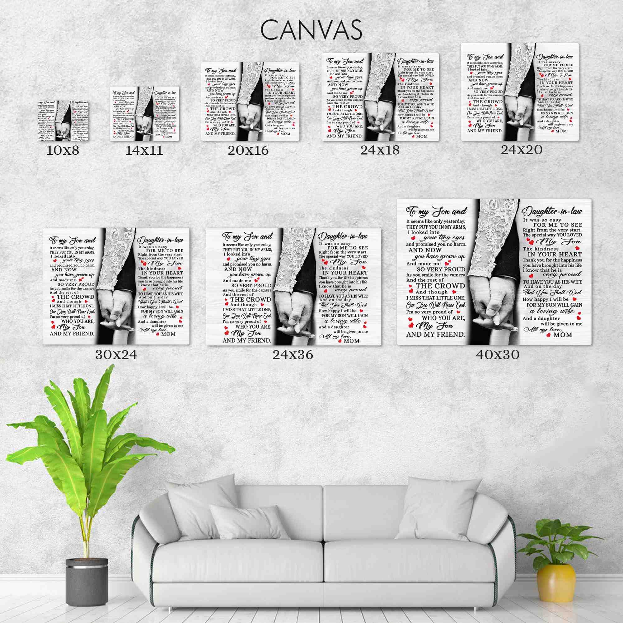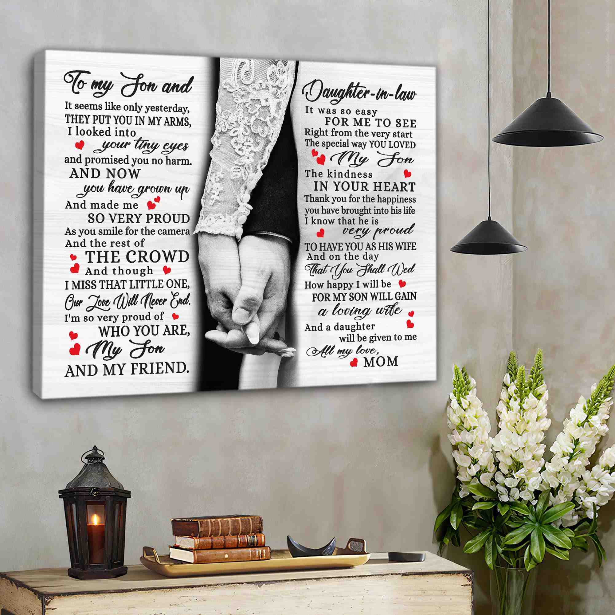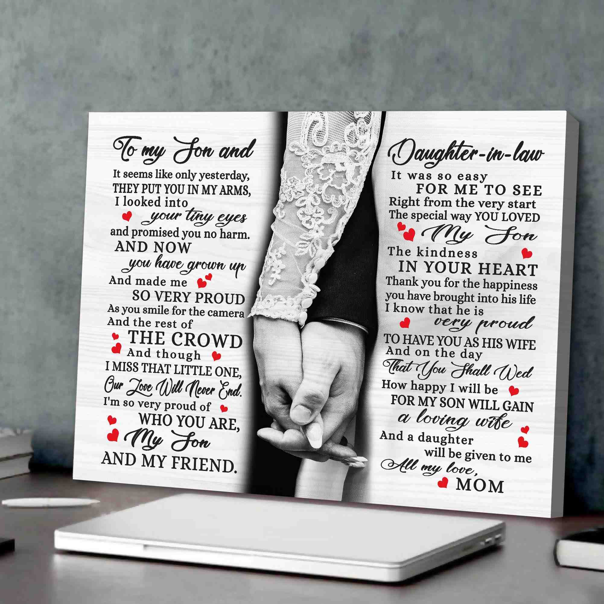 Daughter In Law Gifts From Mother In Law Canvas Wall Art, Wedding Shower Gifts For Son.
