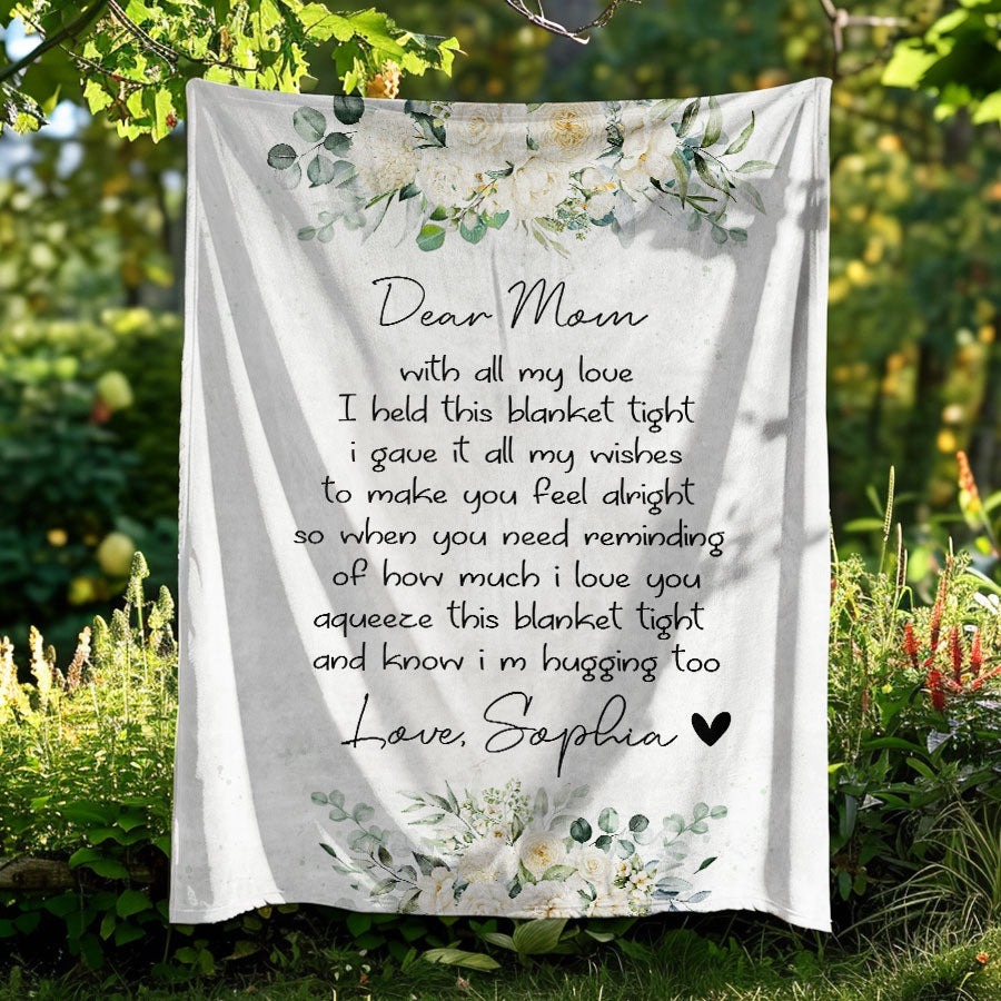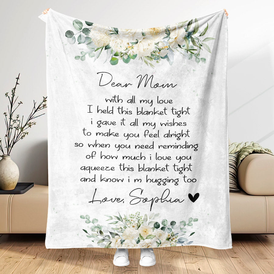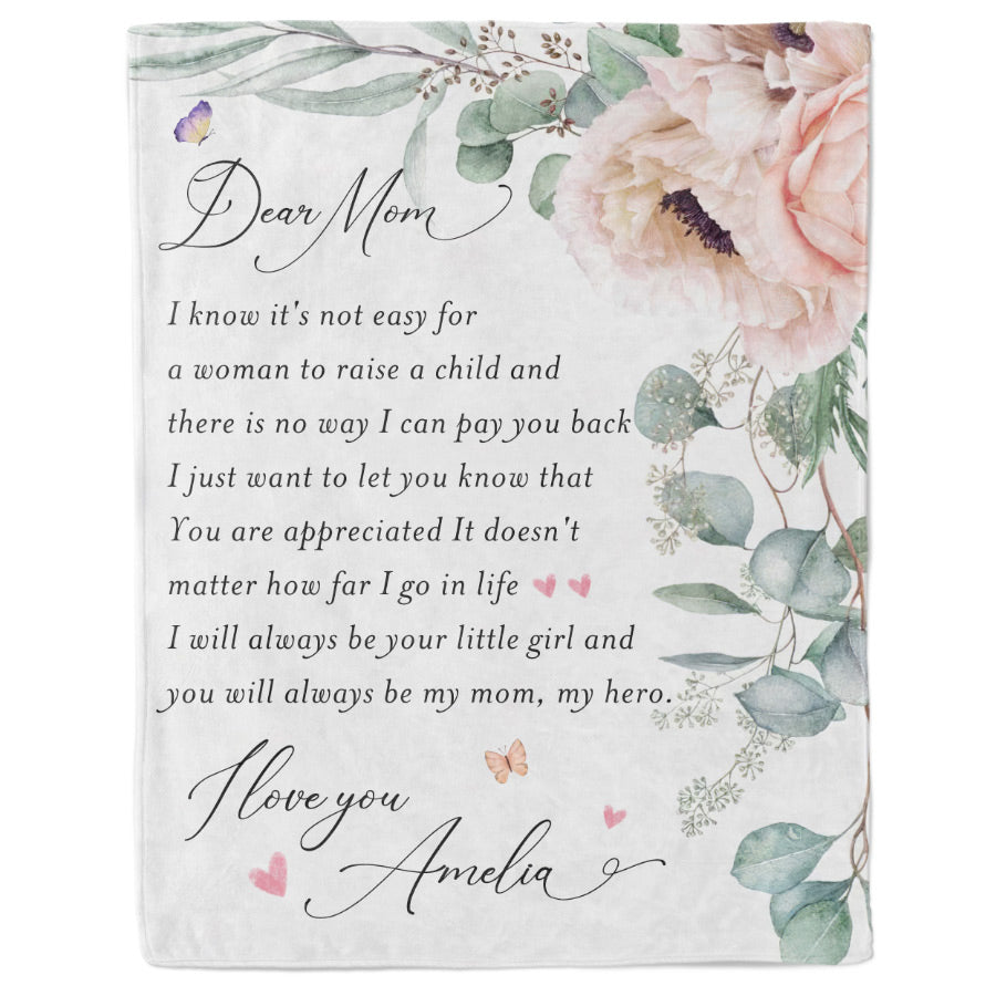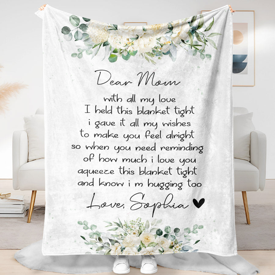 More than dear mom blanket | custom mothers day presents for chilly evenings, this customized blanket offers mom moments of joy throughout her day. Whether resting between errands or soothing her with after-dinner relaxation, your special blanket acts as a hug whenever she needs it most. Its timeless fleece design also makes it a cozy companion for many Mother's Days to come.