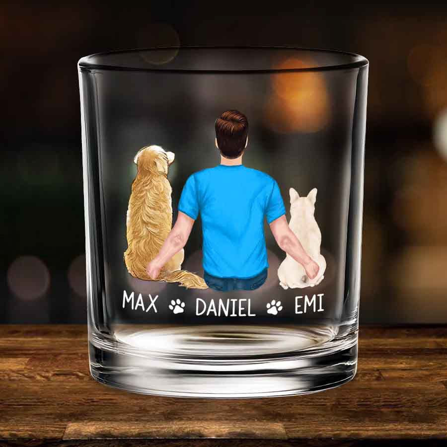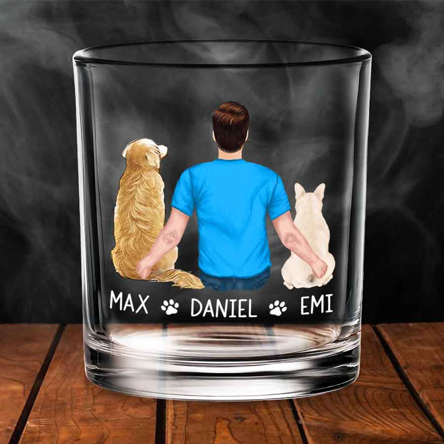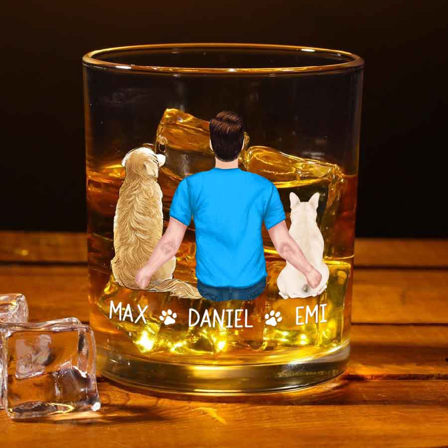 Fathers will smile when they see their face looking back at them from this one-of-a kind whiskey glass, surrounded by paw prints and images of their loyal dog companions.