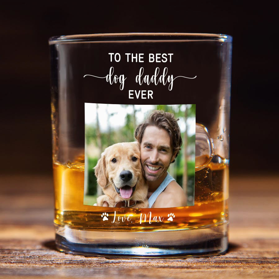 The funny dog dad gift | custom whiskey glass come from the ones that know you best - your pets. Bring a smile to dad's face and fill his glass with something cold on his special day with these sentimental presents for dog owners that show how much his pet family loves him.