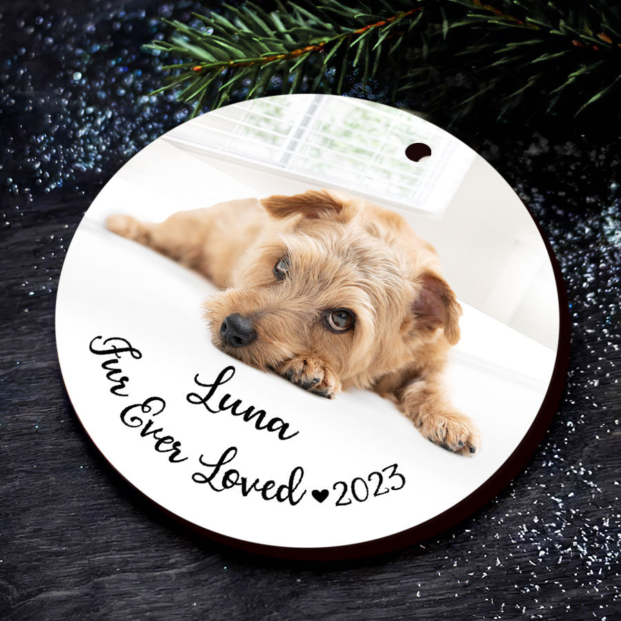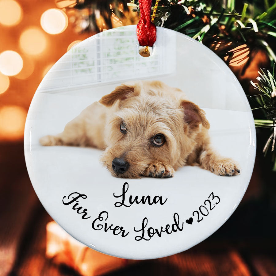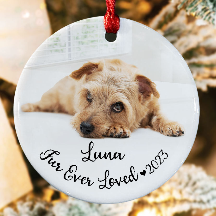 Give comfort, closure, and joyful memories with this beautiful dog memorial photo ornament | dog remembrance ornament. Order yours today to help ease the heartache of a friend in need. Their pet would want them to find peace - help make that possible with this caring gesture.