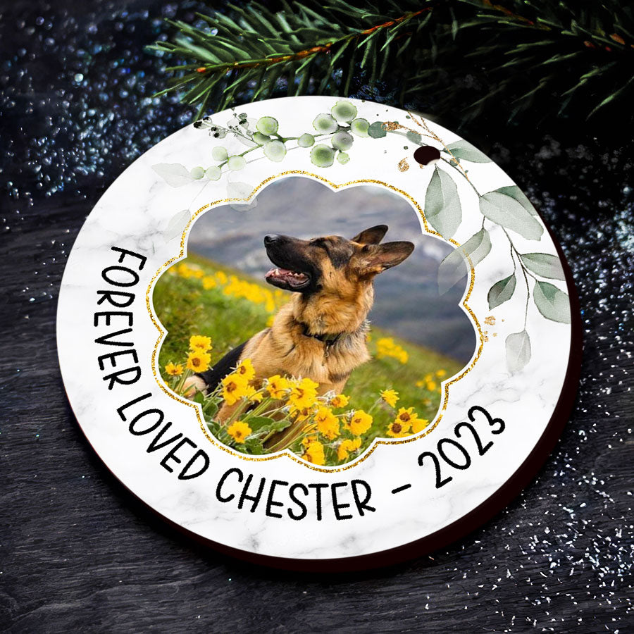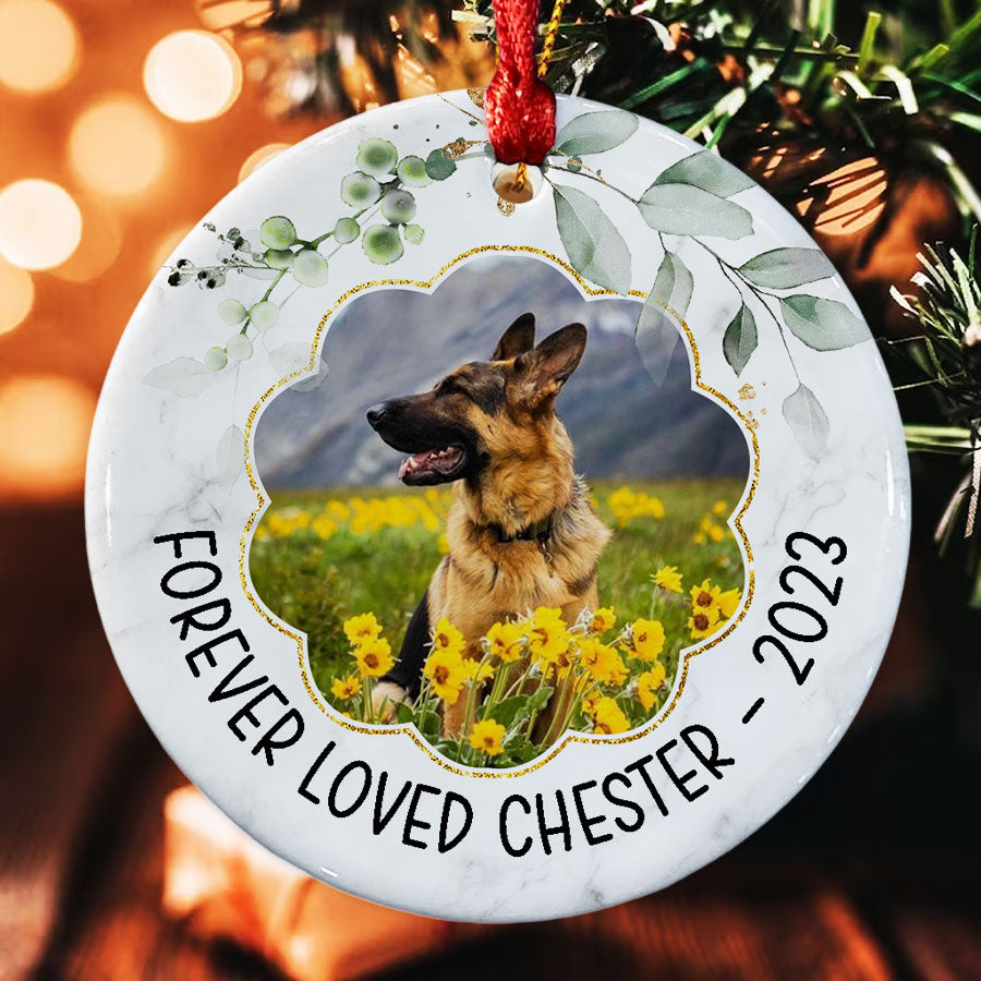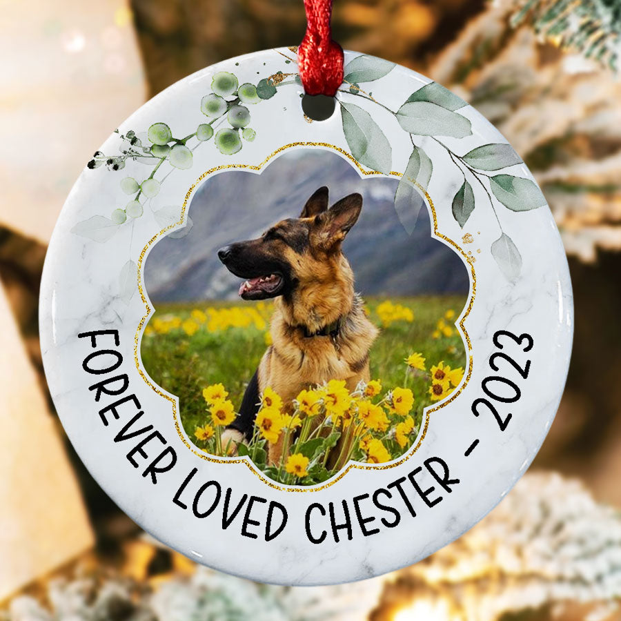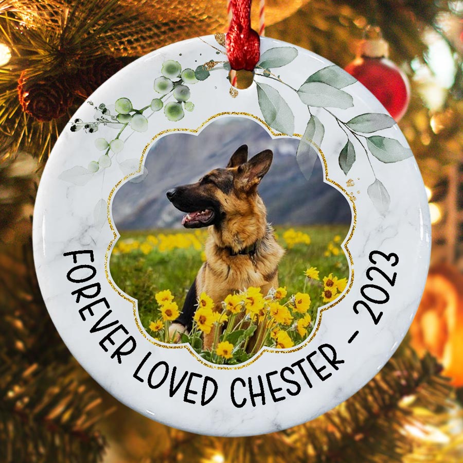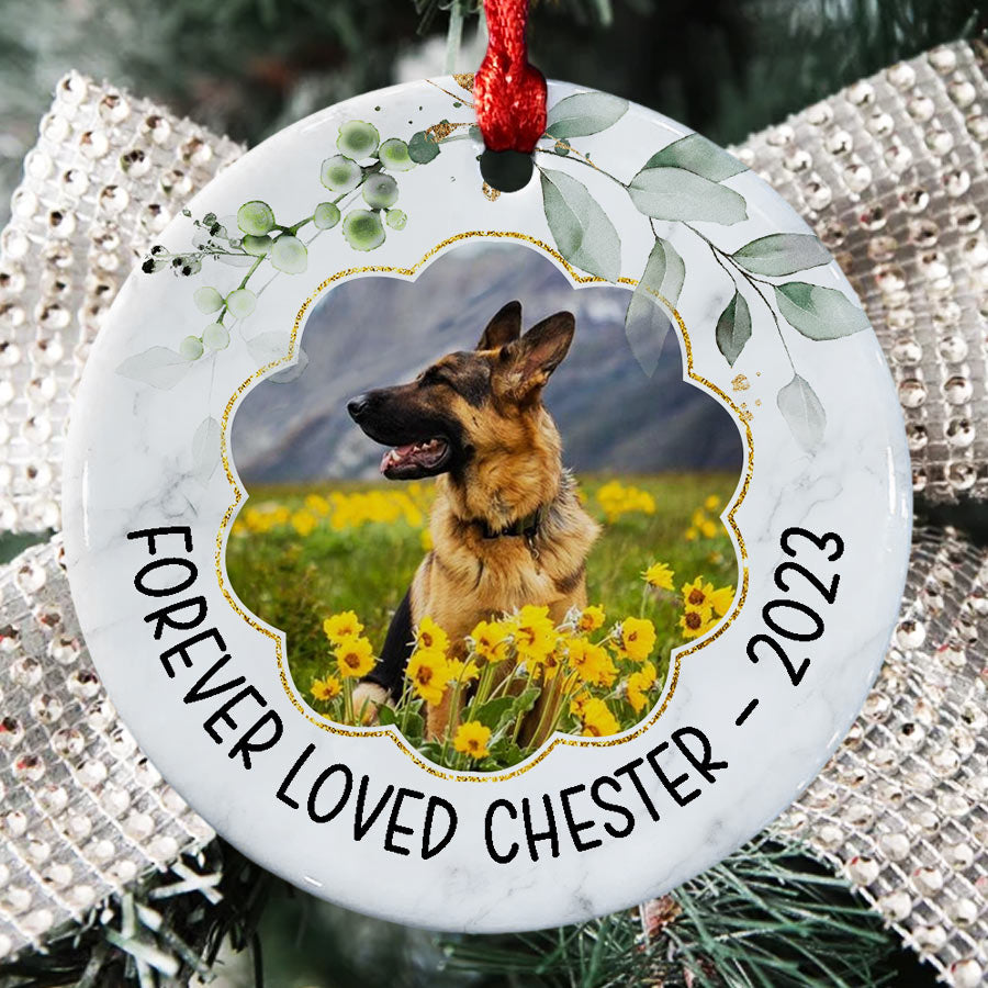 Give comfort, closure, and joyful memories with this beautiful dog memorial photo ornament | deceased dog ornaments. Order yours today to help ease the heartache of a friend in need. Their pet would want them to find peace - help make that possible with this caring gesture.