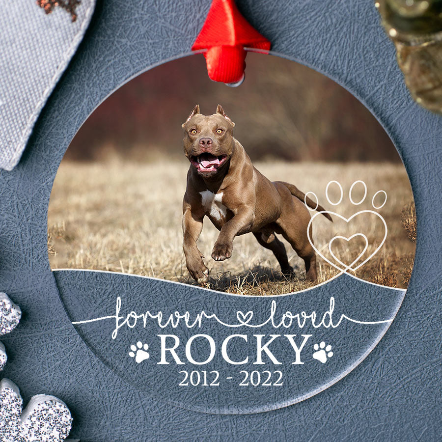 This delicate dog memorial photo ornament | rest in peace dog ornament is the perfect way to honor your pet's memory while finding comfort and closure.