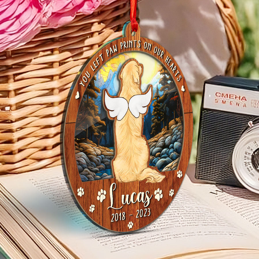 Dog Memorial Suncatcher | You Left Your Paw Prints on My Heart Ornament