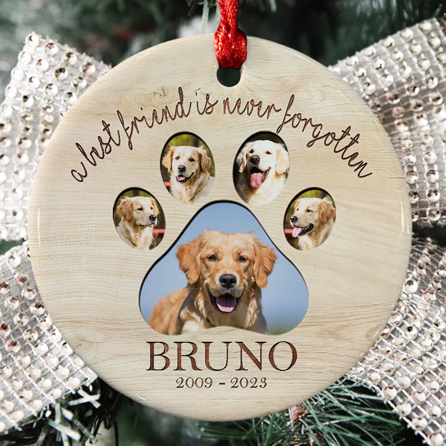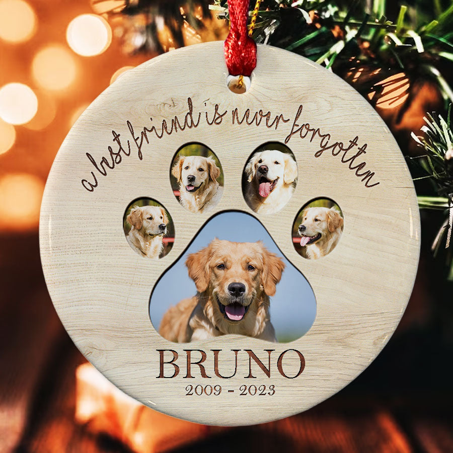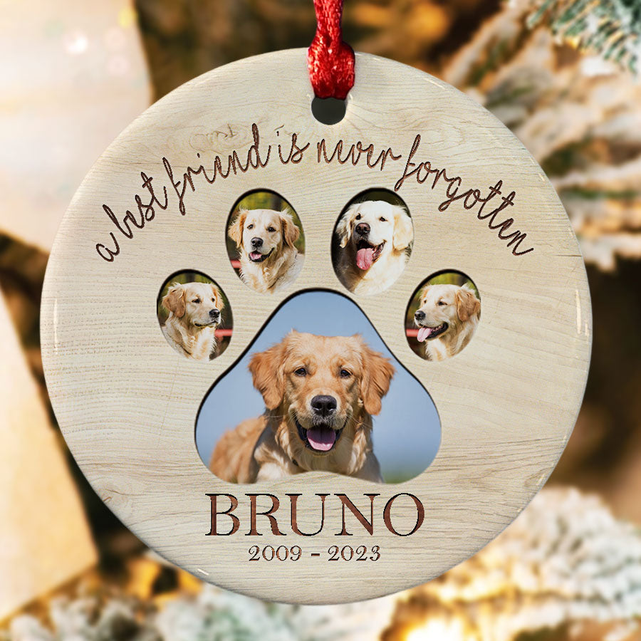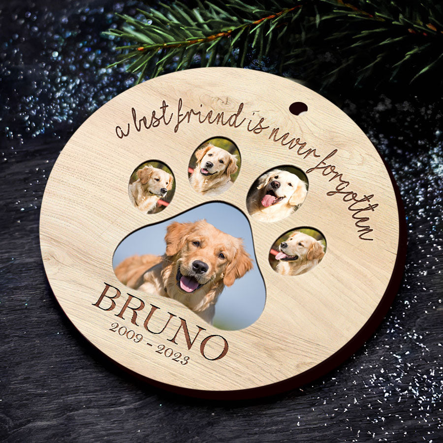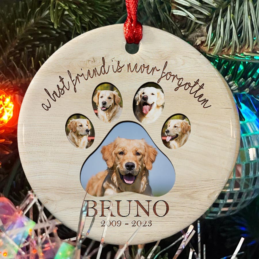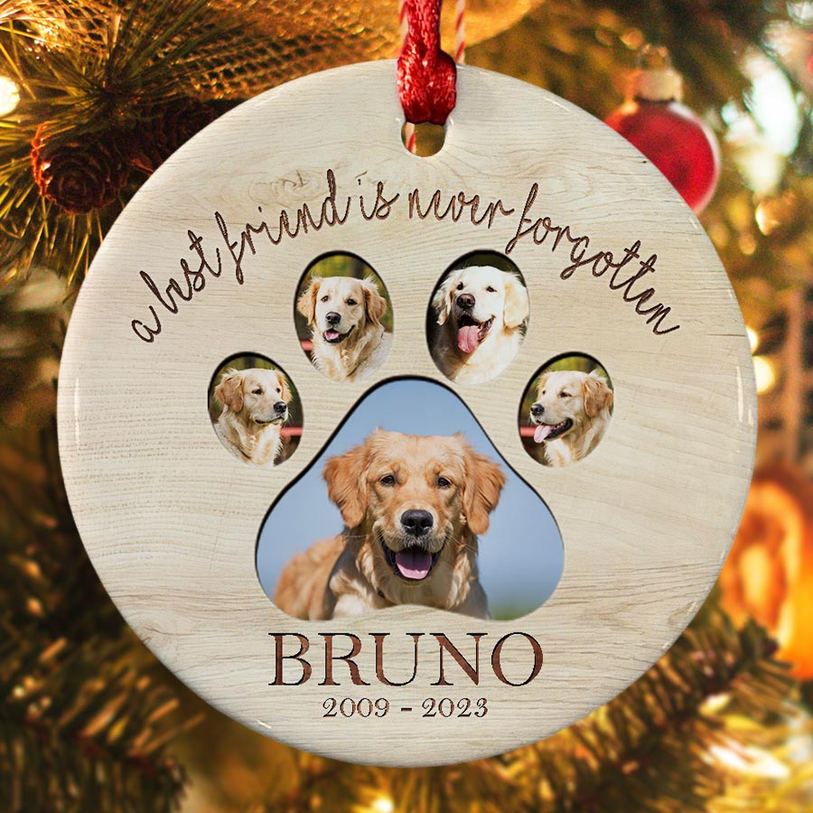 This delicate dog photo memorial ornament is the perfect way to honor your pet's memory while finding comfort and closure.