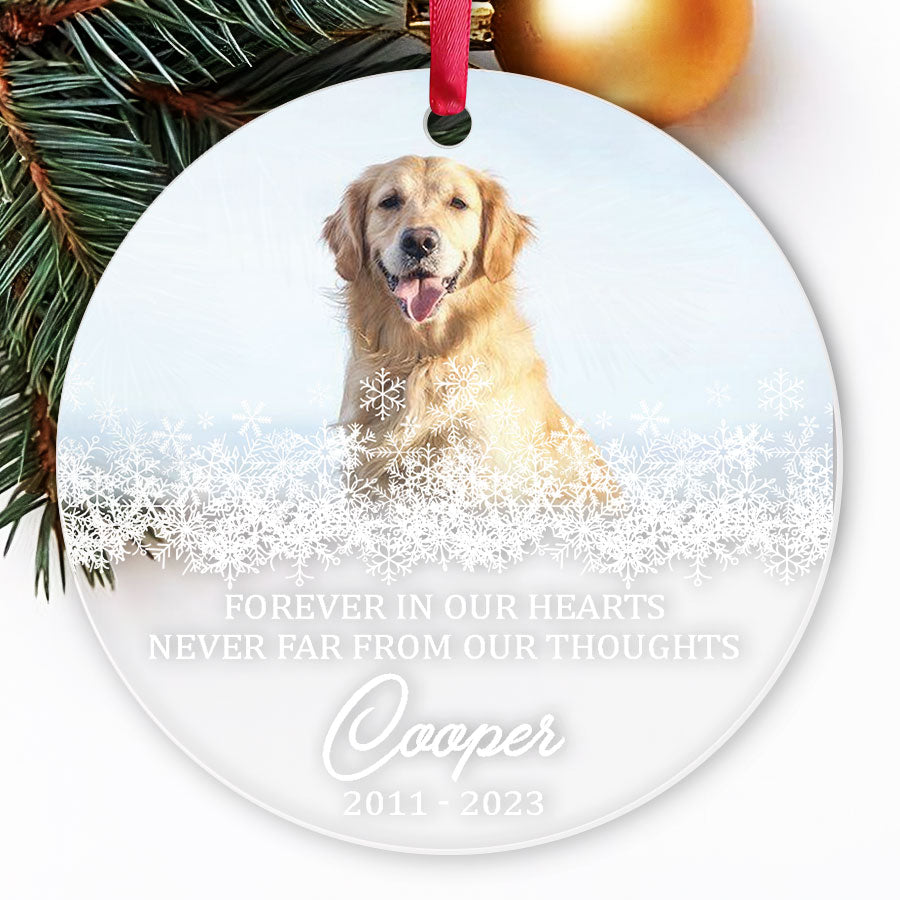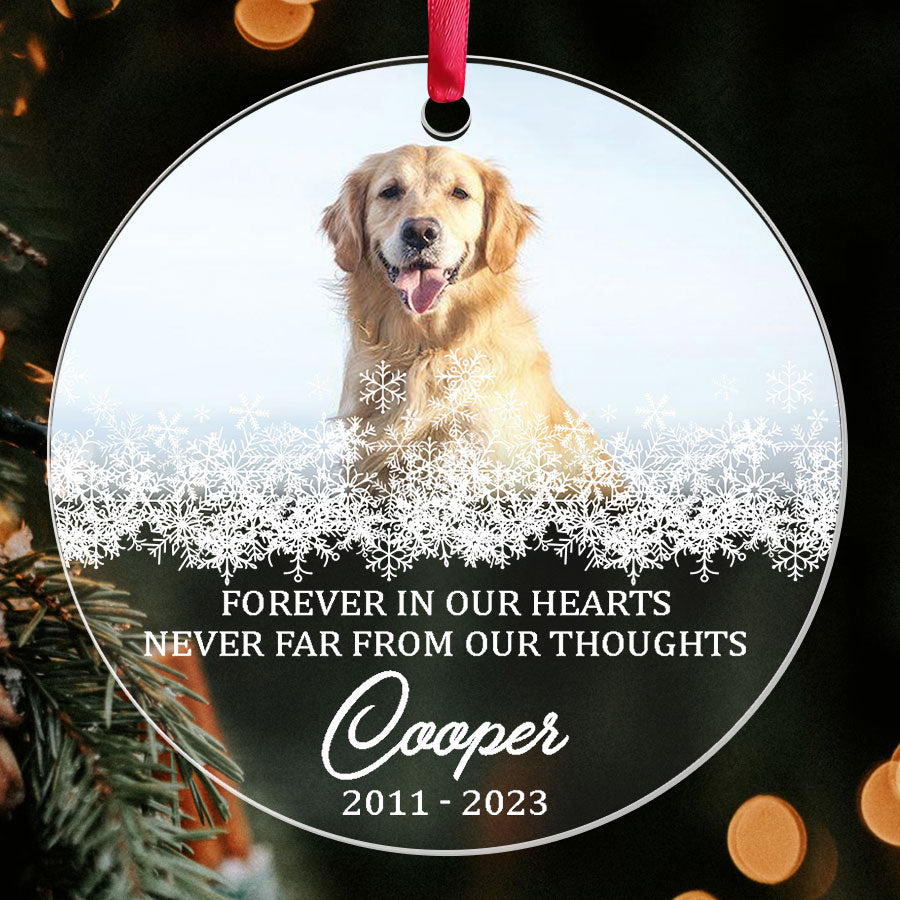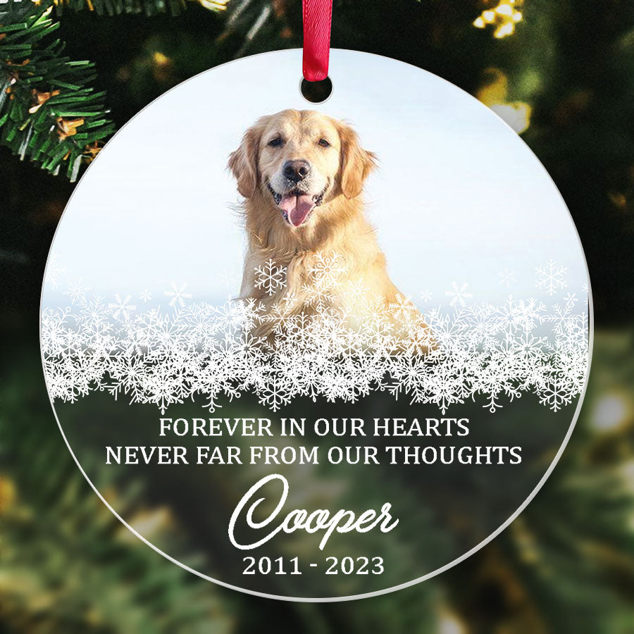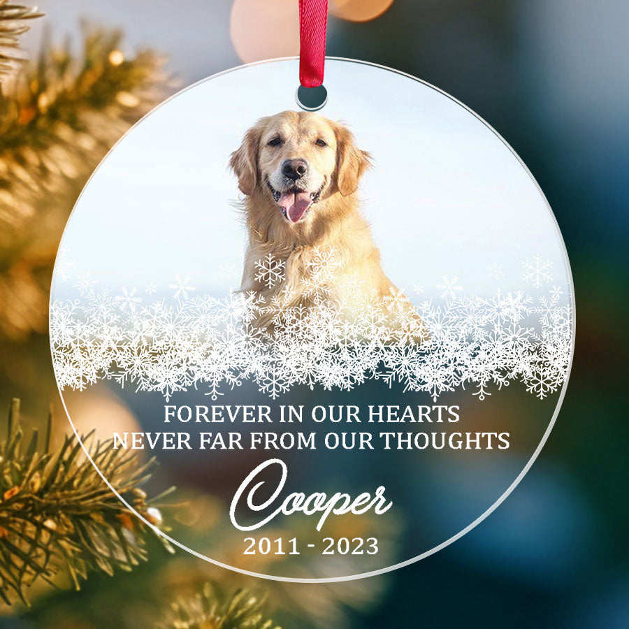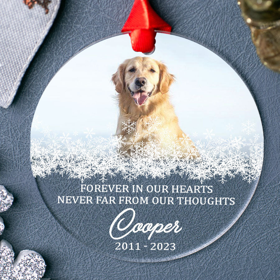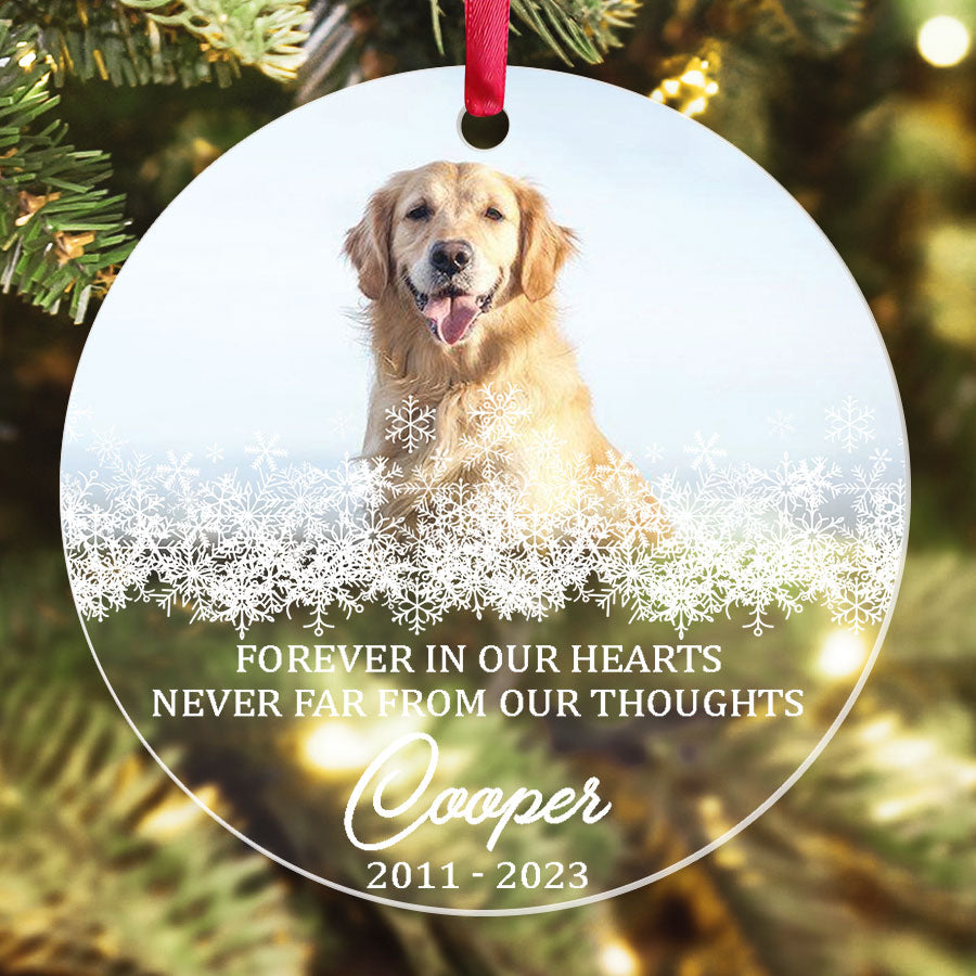 Give comfort, closure, and joyful memories with this beautiful dog photo memorial ornament | dog in heaven christmas ornament. Order yours today to help ease the heartache of a friend in need. Their pet would want them to find peace - help make that possible with this caring gesture.