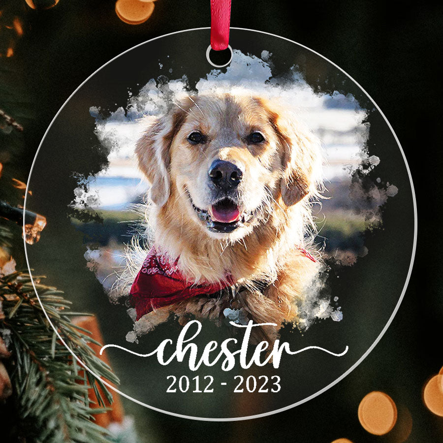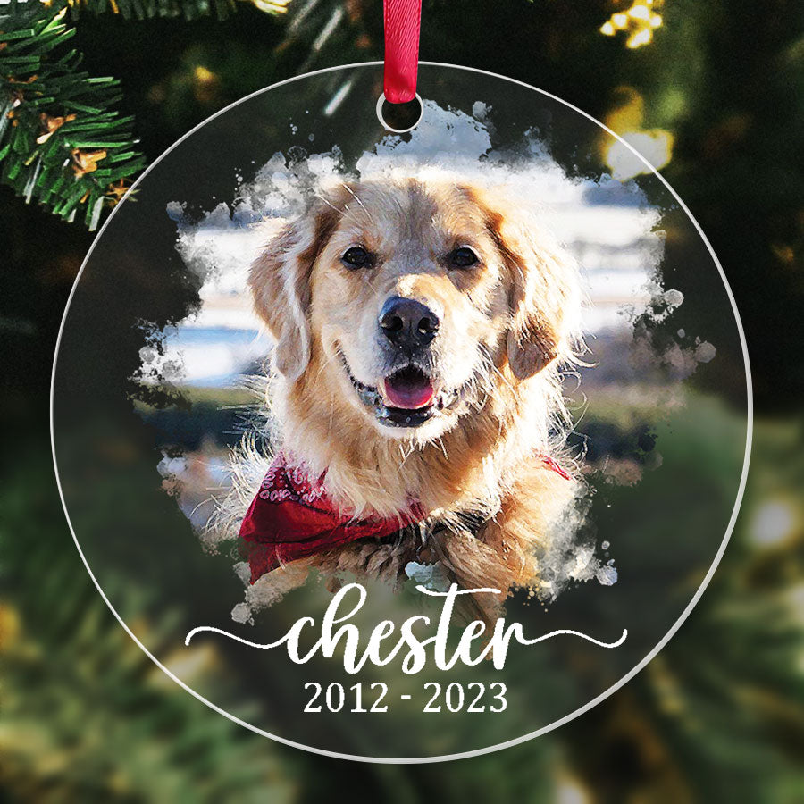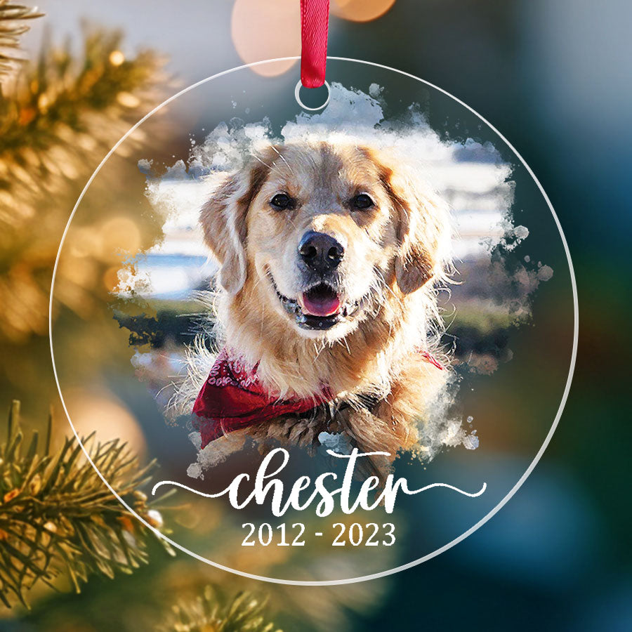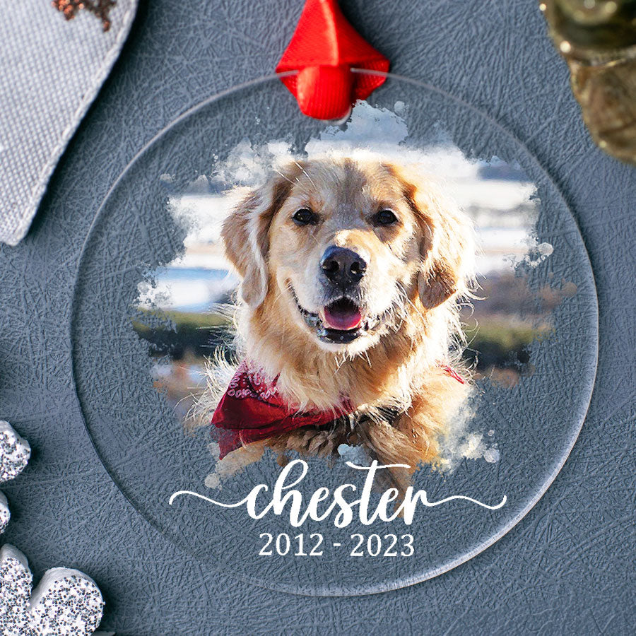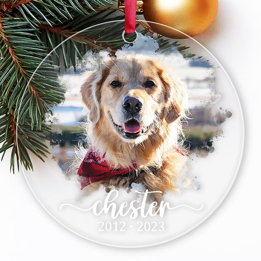 Give comfort, closure, and joyful memories with this beautiful dog photo memorial ornament | dog heaven ornament. Order yours today to help ease the heartache of a friend in need. Their pet would want them to find peace - help make that possible with this caring gesture.