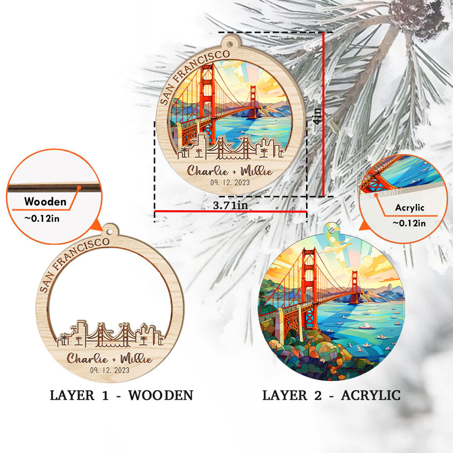 The engaged ornament | custom map suncatcher ornaments add a feeling of warmth, joy, and magic to any window. As the sun streams through during the day, a kaleidoscope of colors is cast all around. Reds, oranges, yellows, and more will dance on your walls and brighten up even the dreariest of days.