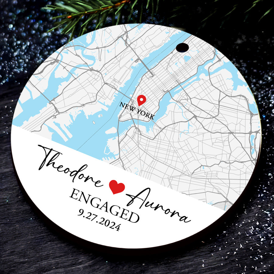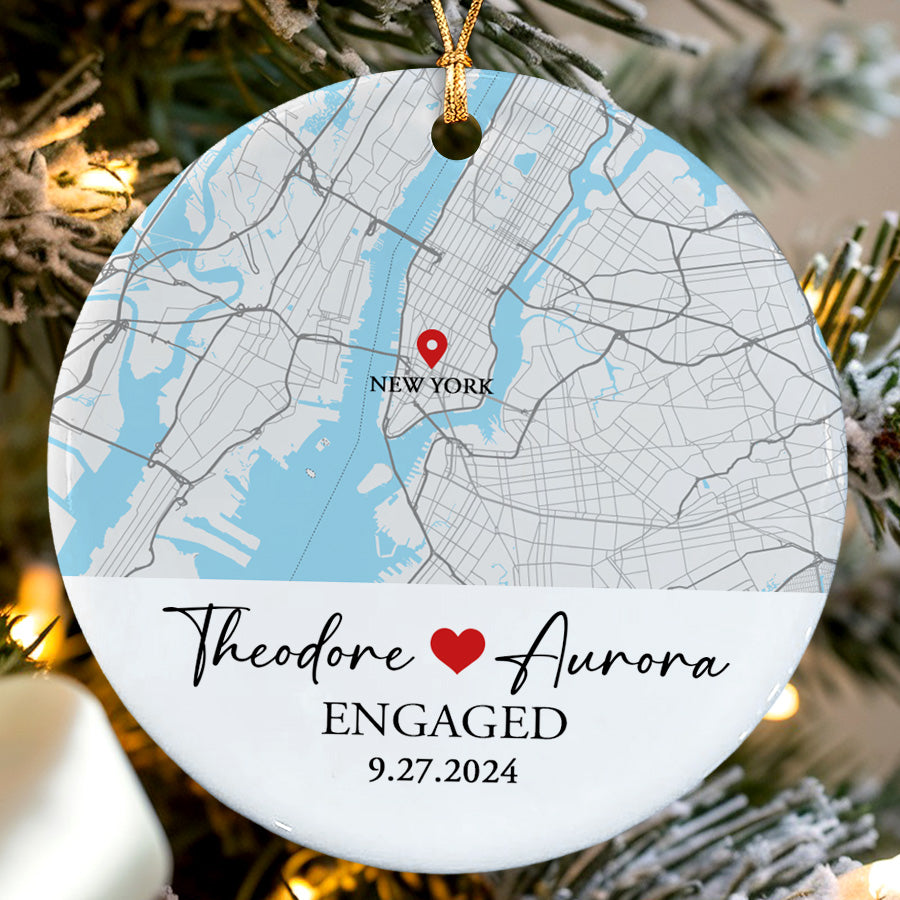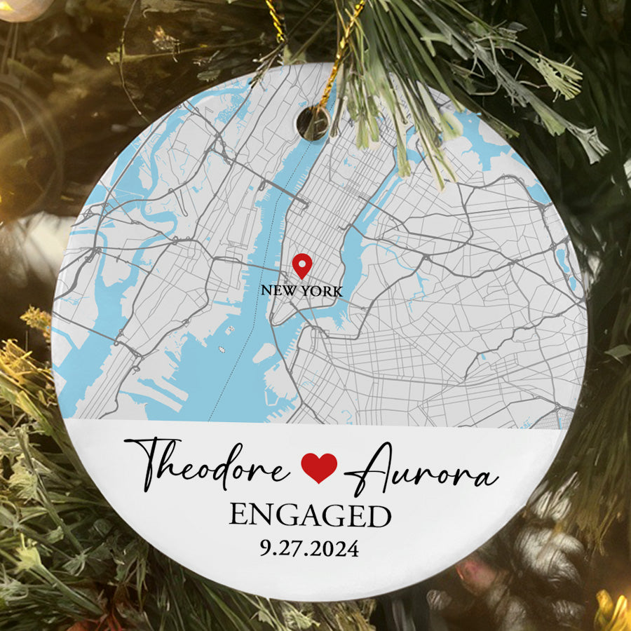 Don’t let your engagement pass by without a beautiful keepsake to commemorate it. Order your engaged ornament | custom map ceramic ornament for couples | circle ornament today and create a lasting symbol of your love. Celebrate your journey together and make every moment count!