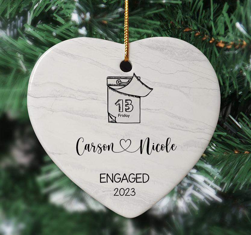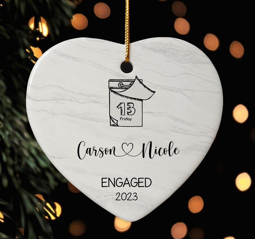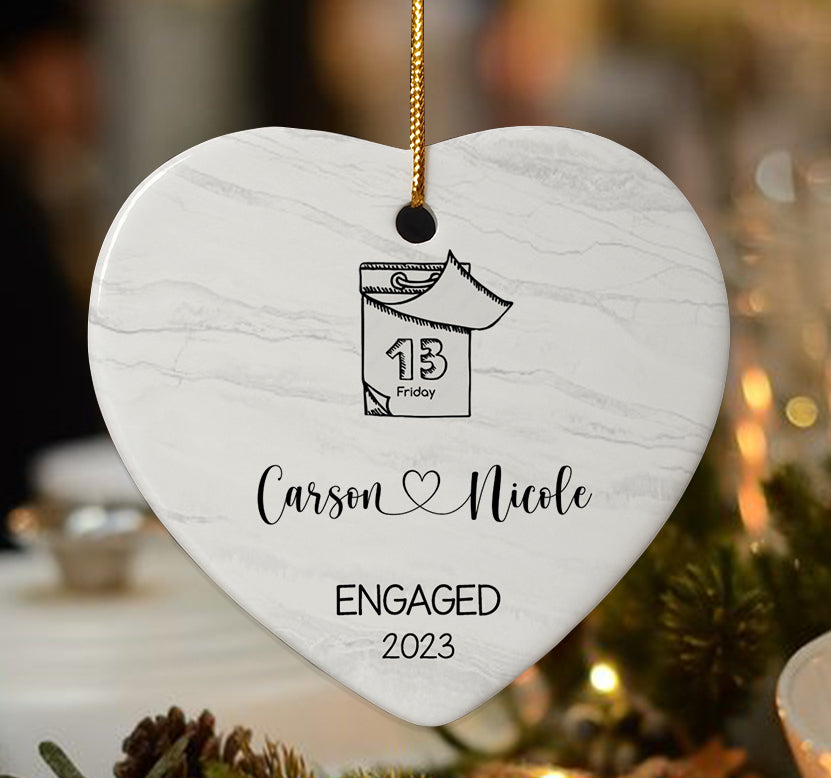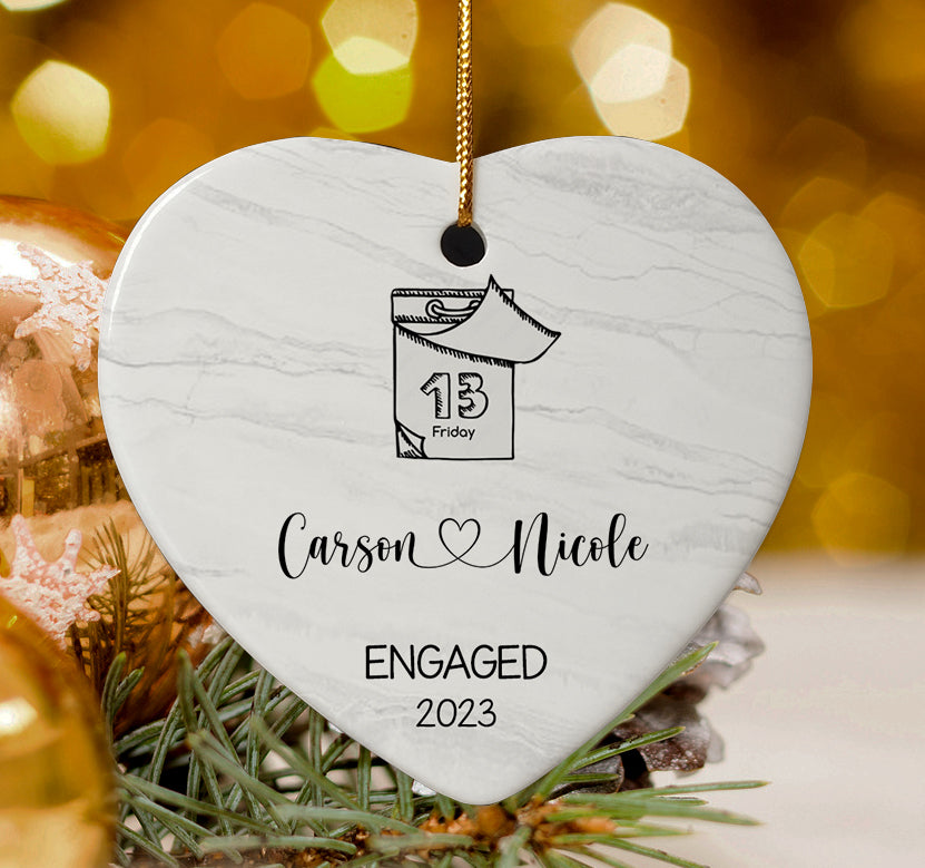 Announcing your engagement is an exciting time to celebrate new beginnings with loved ones. This unique engaged ornaments | engagement date ornament makes a personalized gift to commemorate the proposal and spread joy. Engagement Ornaments create lasting memories of your special day. Display them on your Christmas tree every year to remember the beginning of the forever love story with the wonderful Personalized Christmas Ornaments.
