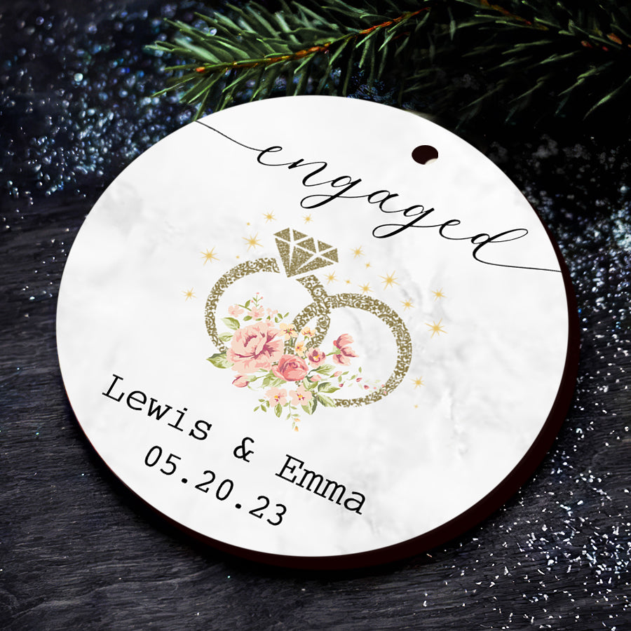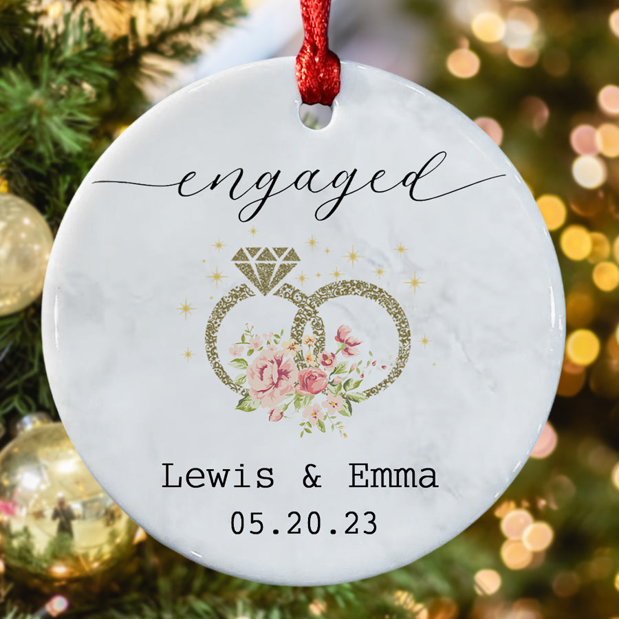 Announcing your engagement is an exciting time to celebrate new beginnings with loved ones. This unique engaged ornaments | engagement ring ornament makes a personalized gift to commemorate the proposal and spread joy. Engagement Ornaments create lasting memories of your special day. Display them on your Christmas tree every year to remember the beginning of the forever love story with the wonderful Personalized Christmas Ornaments.