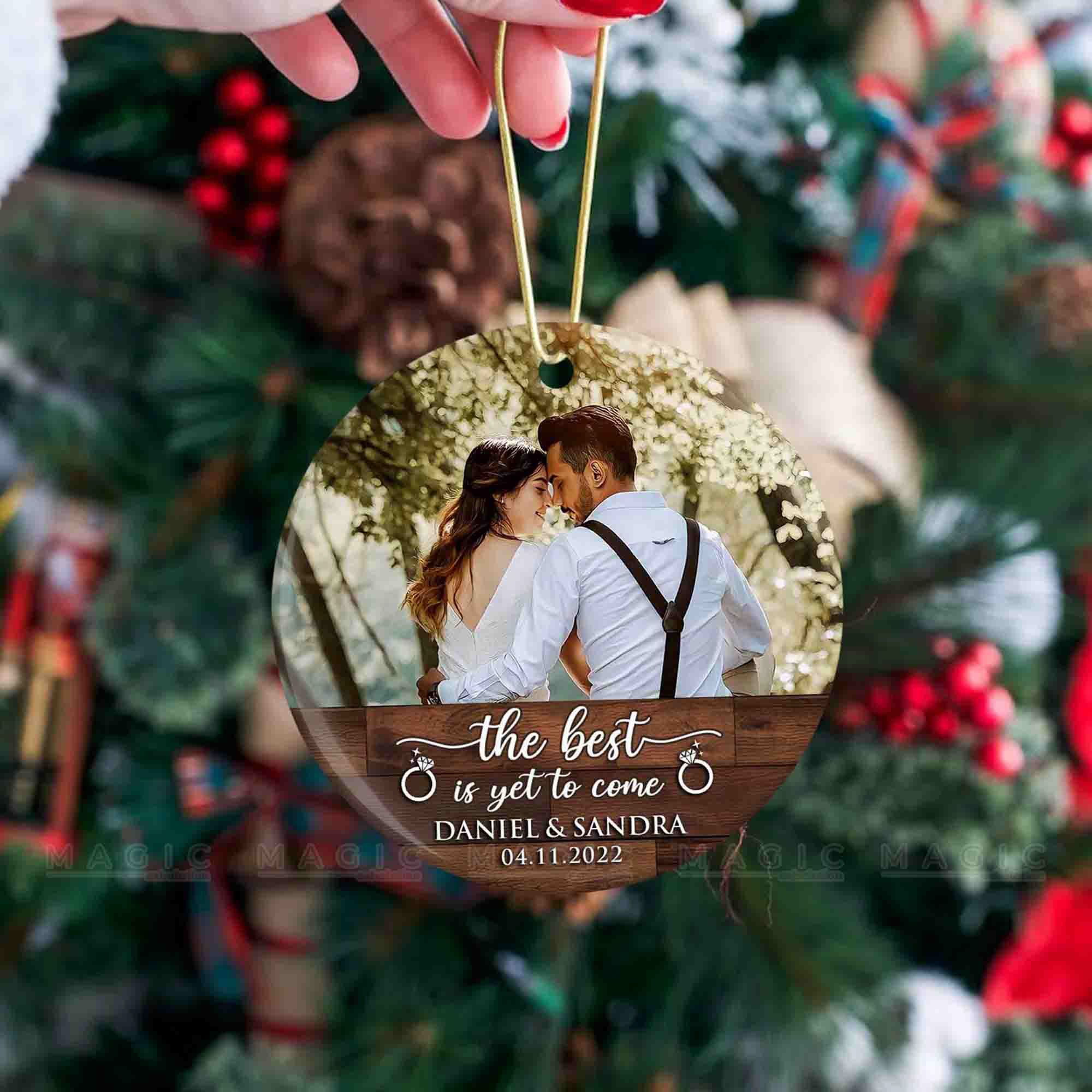Our high-quality ceramic engagement christmas ornaments can be customized with the names of the happy couple, their wedding date, or even a photo of them. Hang it on your tree as a beautiful reminder of your love during the holidays and for years to come.