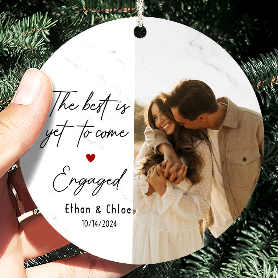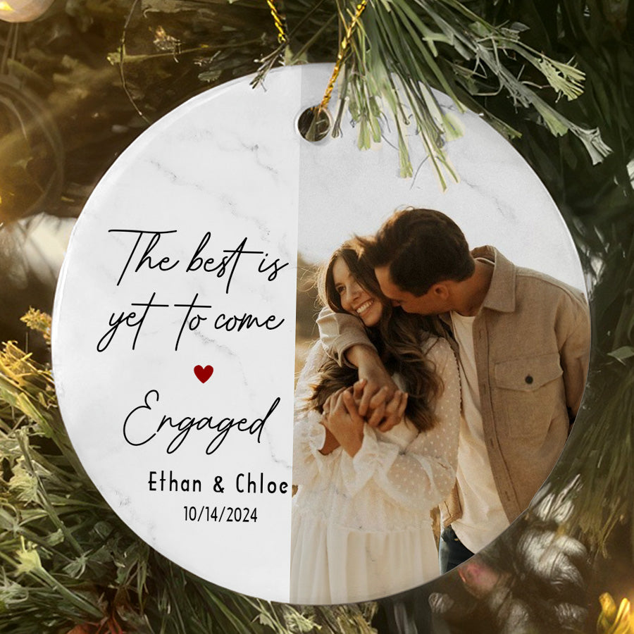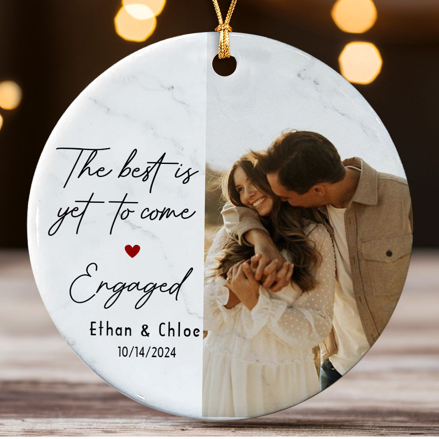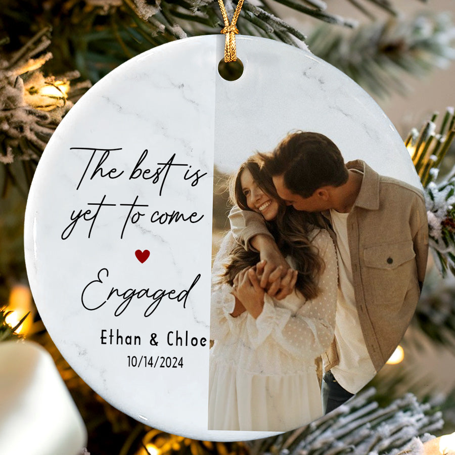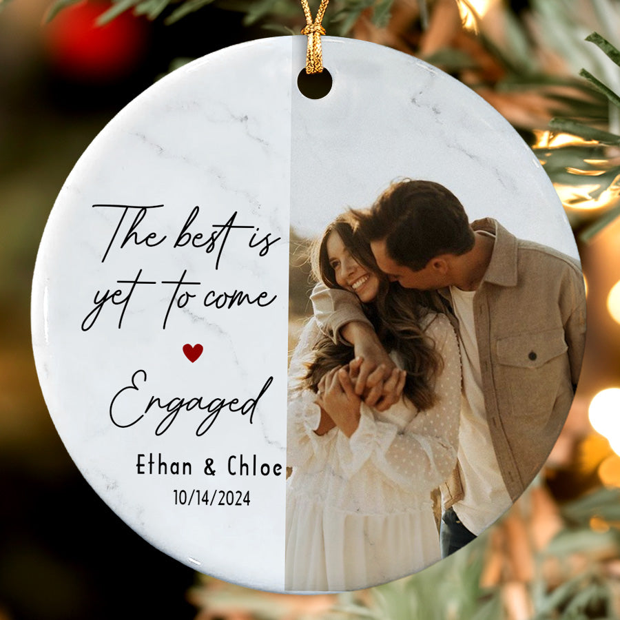 Engagement Xmas Ornaments | Engaged Ceramic Ornament With Custom Photo | Circle Ceramic Ornament