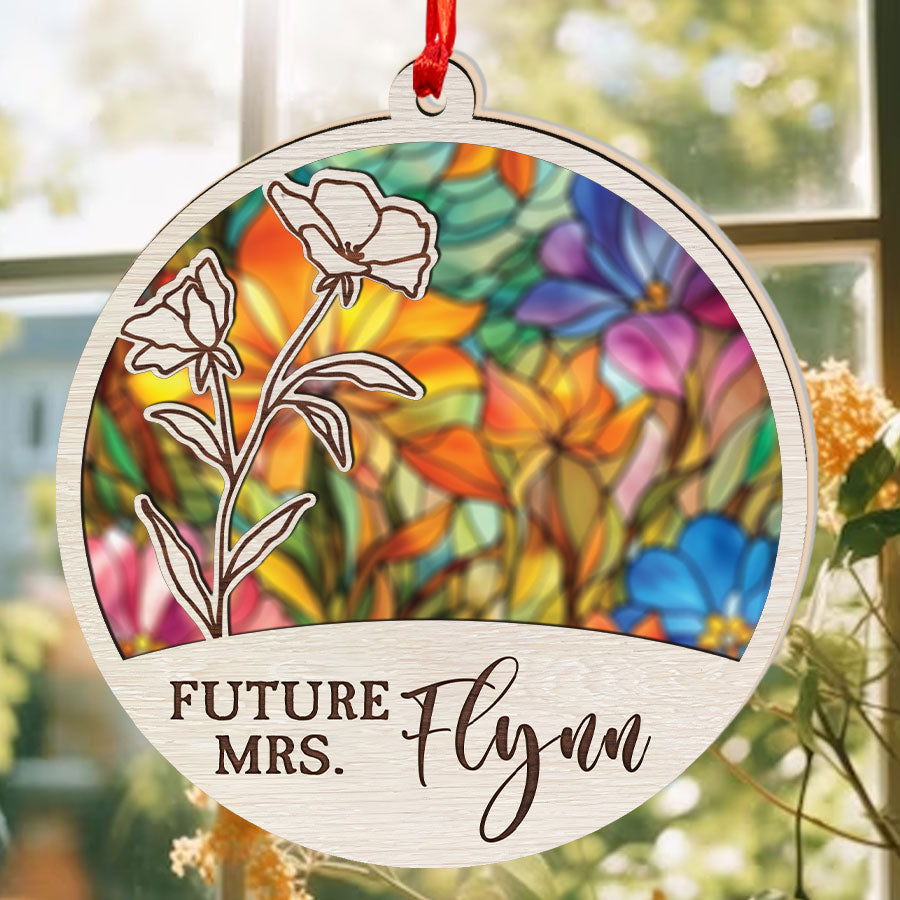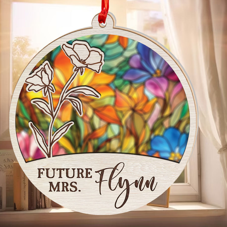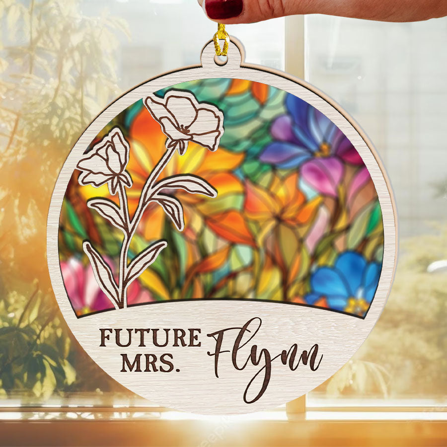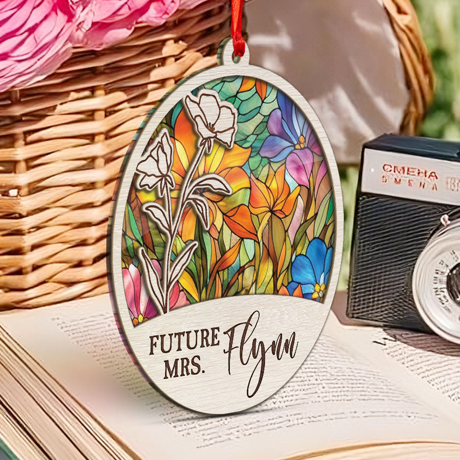 Wooden Engagement Ornament | Engagement Ornament Personalized | Custom Ornament With Name | Suncatcher Ornaments