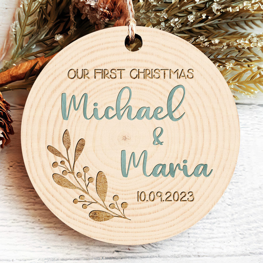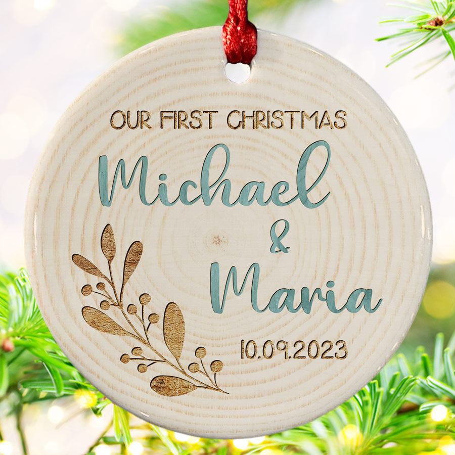 Order now to create a lasting legacy of love. Your engagement date ornament | engagment ornament for couple will be a bright spot of meaning on the tree for decades of Christmas mornings together to come.