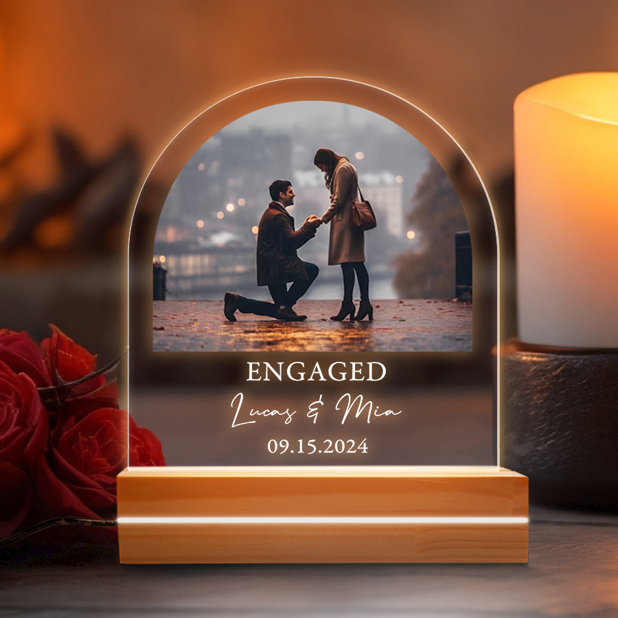 Engagement Gift | Personalised Photo Acrylic Plaque LED Night Light | Arch Shape 6 x 9 in
