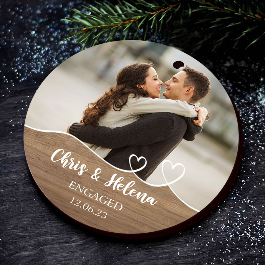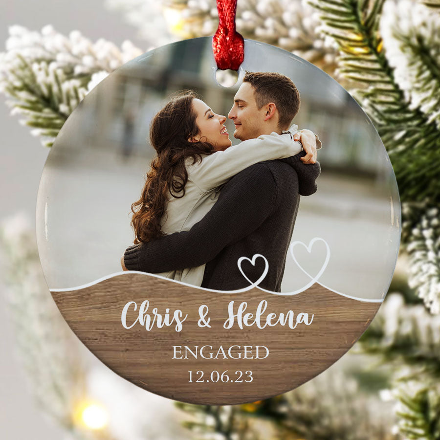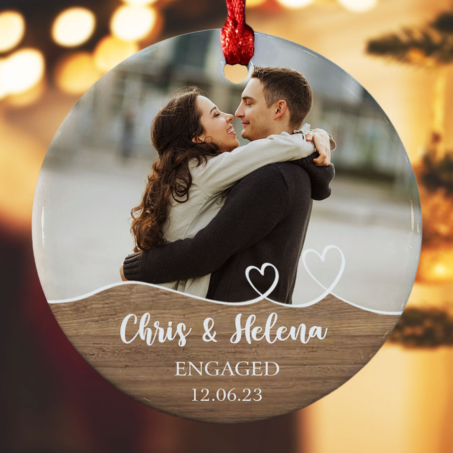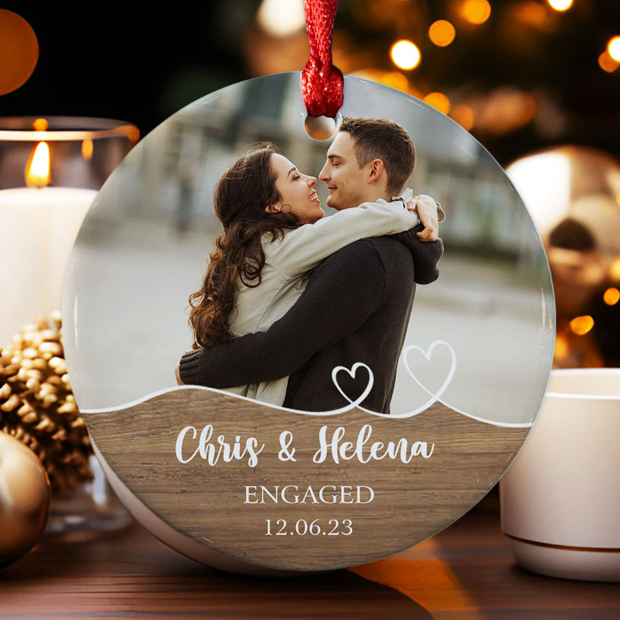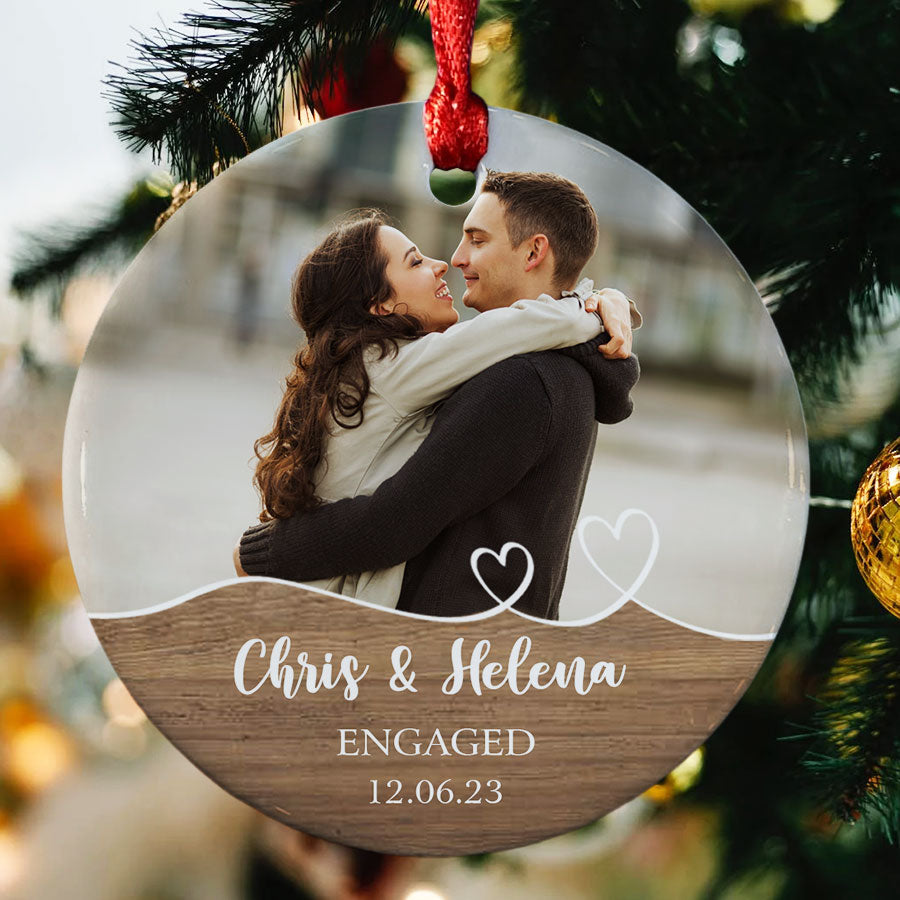 Mark your exciting new chapter with a meaningful keepsake. The engagement ornament | custom photo ornament for engaged couple lets you showcase your joy whenever you view your tree. Engagement Ornaments create lasting memories of your special day. Display them on your Christmas tree every year to remember the beginning of the forever love story with the wonderful Personalized Christmas Ornaments.