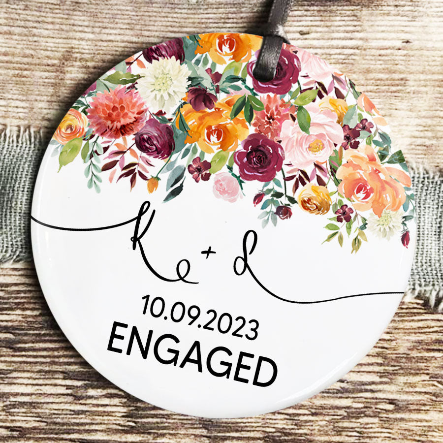 Just Engaged Ornament | White Ceramic Ornaments | Custom Engaged 2023 Ornament | Name Ornaments