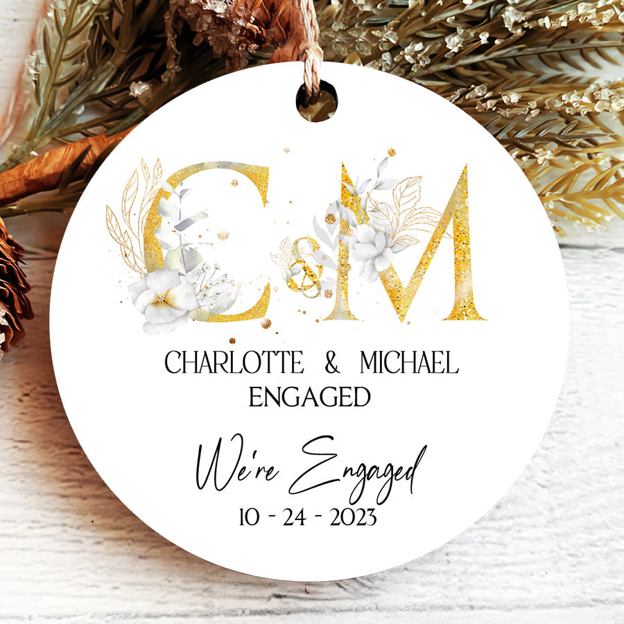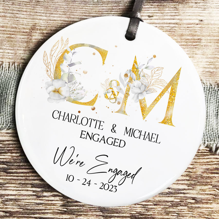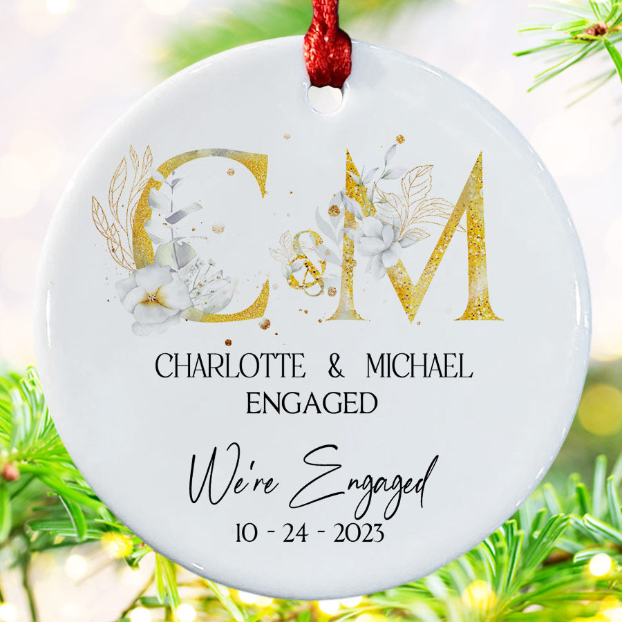 We Re Engaged Ornament | Floral Ornament For Engaged Couple | Personalized Ceramic Ornaments